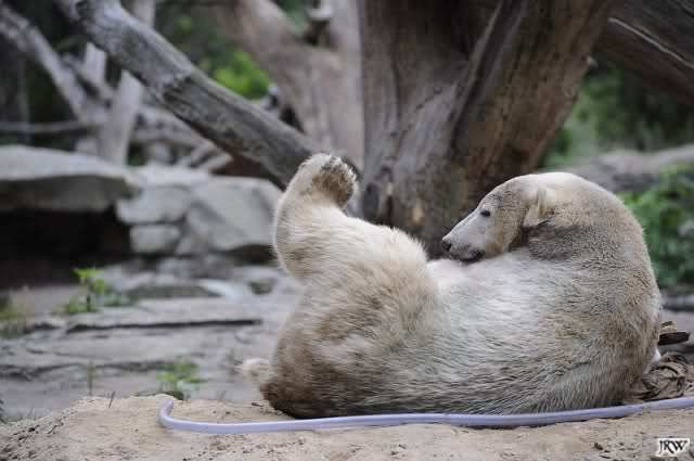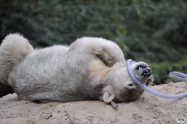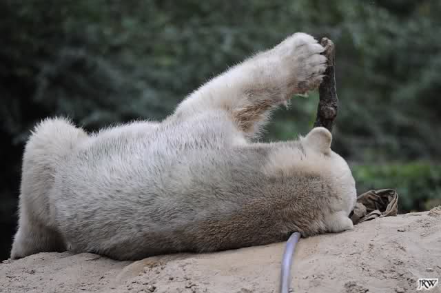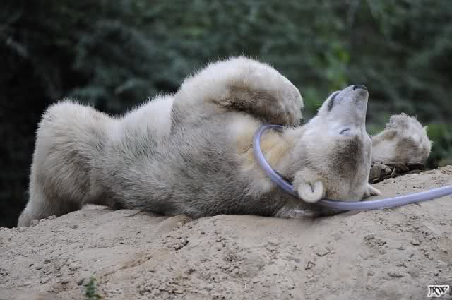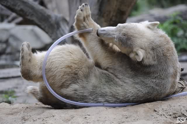 Jetzt wissen wir, warum Knut mit seinen Jutesäcken kuschelt. Hätte er auch so einen Partner, würde das sicher genauso aussehen.
