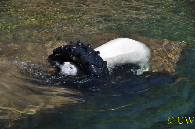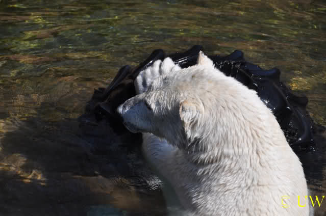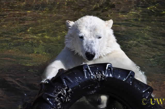 Hier beweist Rasputin, dass er nicht zu dick ist, er bleibt nicht im Reifen stecken sondern schwimmt locker hindurch
