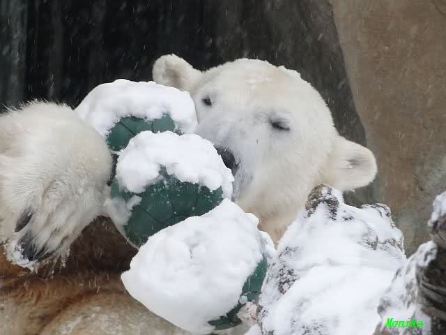 Es schneite die ganze Zeit leicht und der Zoo sah wieder wunderschön aus. Durch den Neuschnee war es nicht so glatt wie in den letzten Tagen.