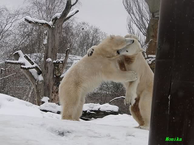 Es fing wieder an zu schneien und wir gingen uns aufwärmen. Als wir den Zoo nach einem kleinen Rundgang verließen, verabschiedete ich mich vom Pförtner mit einem Kniefall. Erst schaute er betroffen drein und als ich lachend wieder hochkam fragte er was das denn gewesen sei. Ich sagte ihm natürlich, dass ich mich lediglich für einen netten Nachmittag bei ihm bedanken wollte.