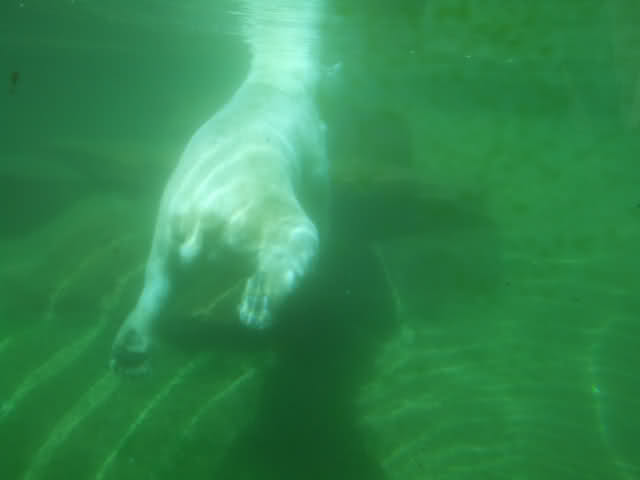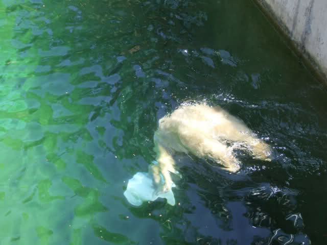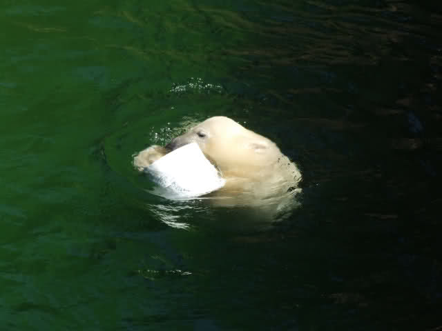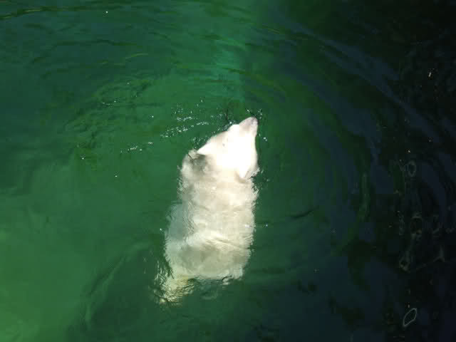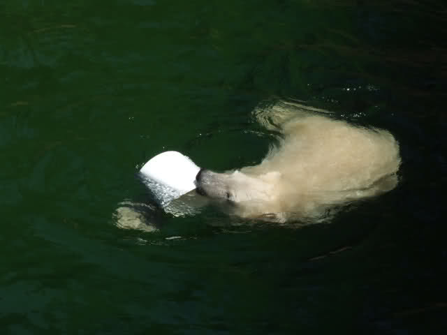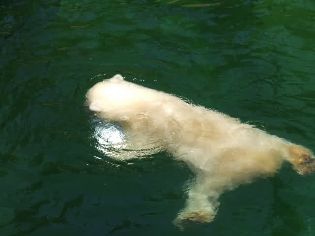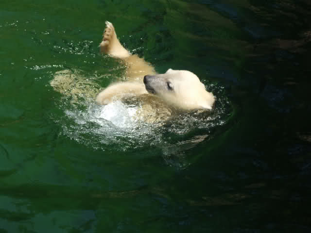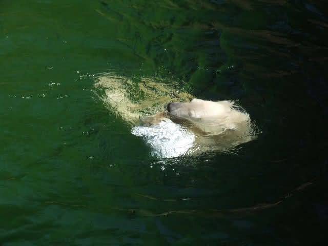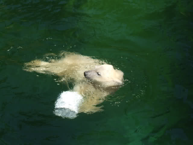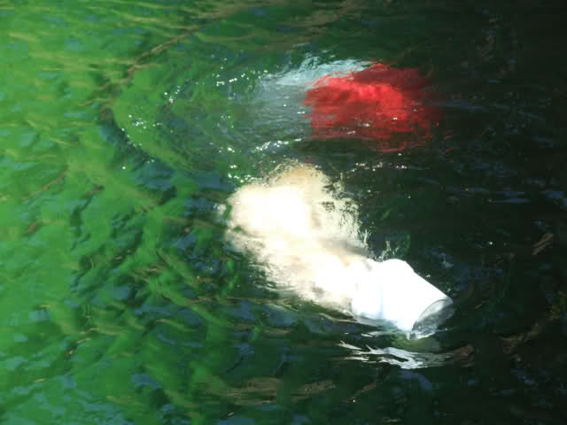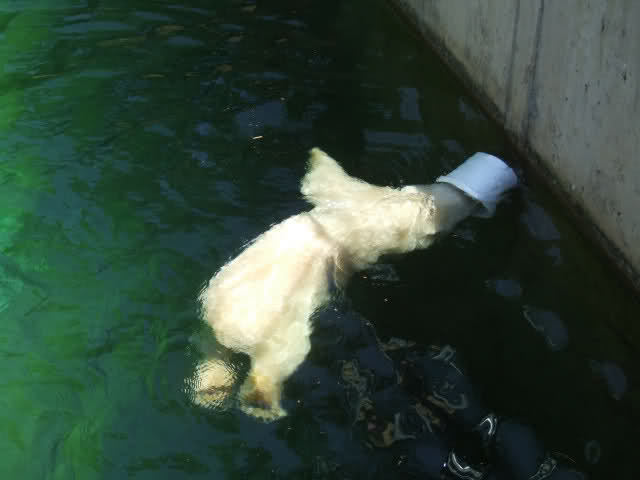 auch beim Schwimmen steckt Flocke den Kopf gerne irgendwo hinein