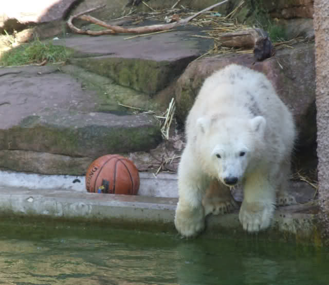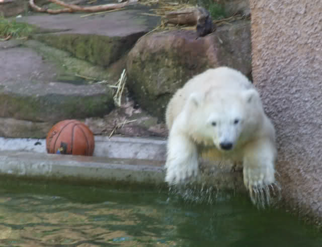 An einem Sonntag im Nürnberger Zoo. Vor dem Bärengehege machen die Besucher allerhand Grimassen und Kapriolen, um die Aufmerksamkeit von Flocke zu erregen.