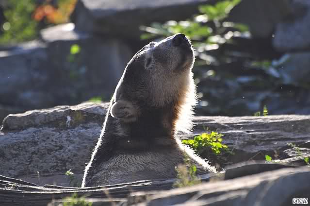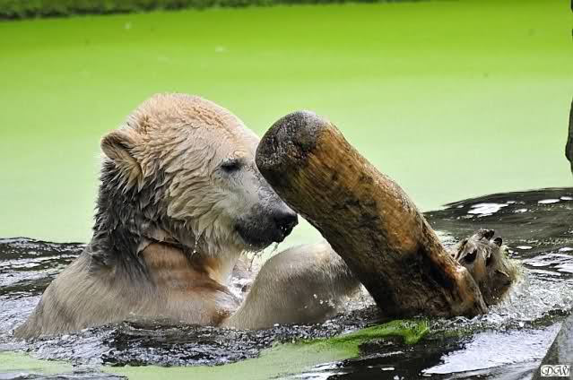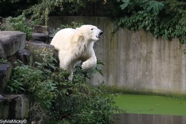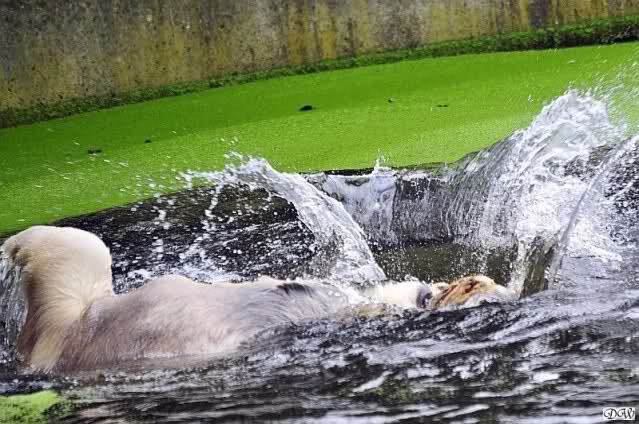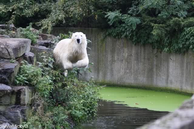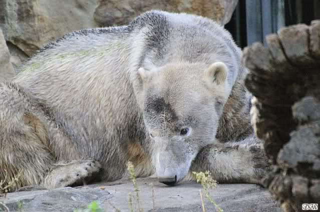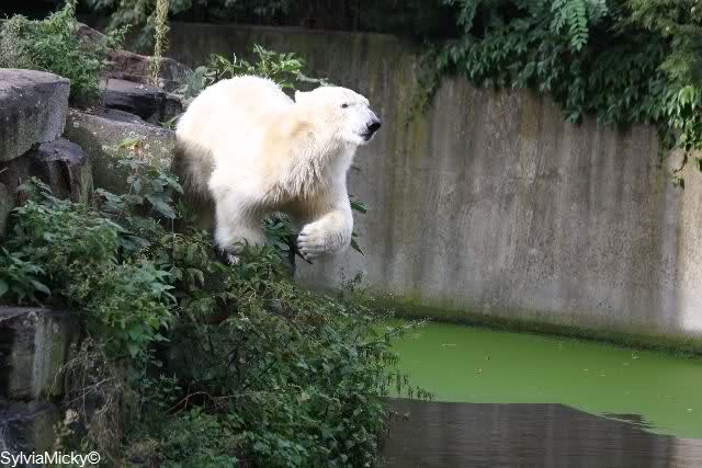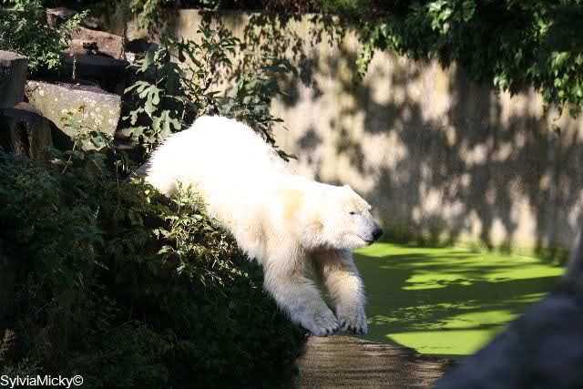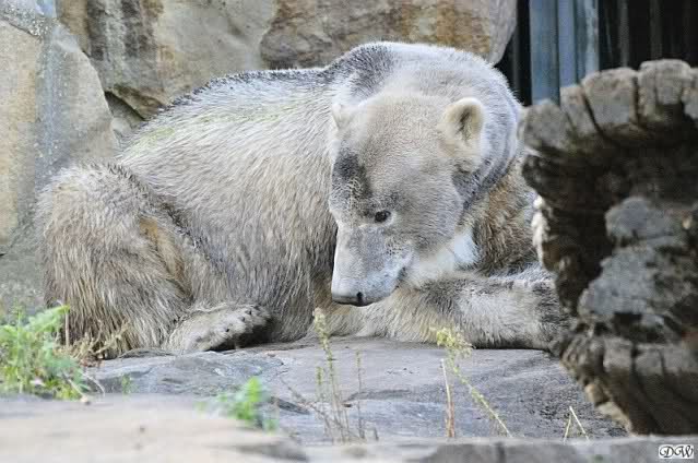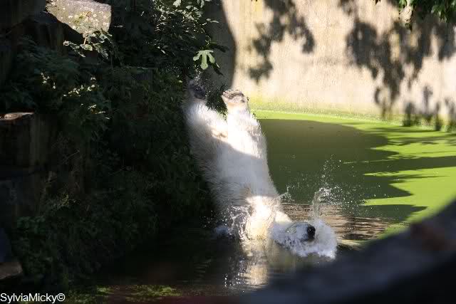 Aufregend auch der Tag im Zoo mit sehr vielen Besuchern, wie Sylvia es ja schon schrieb. Wie oft ich heute gesagt habe, das dies nicht Knut sei, sondern Giovanna, habe ich irgendwann nicht mehr gezählt. Aber woher sollen die auswärtigen Besucher auch wissen, wer auf der Anlage ist.