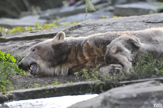 Gianna war heute den ganzen Tag auf der Anlage. Sie wird mit jedem Tag ruhiger. Sie schwimmt sehr viel und springt immer wieder mit Vergnügen in den Wassergraben. Was ich aber nicht verstehe, warum die Tür den ganzen Tag zu war. Sie geht sowieso immer nur kurz in die Höhle. Sie schaute immer wieder nach, ob die Tür auf war. Sie wurde aber erst gegen 18.00 geöffnet. Hat das was mit austellen der Tiere zu tun?