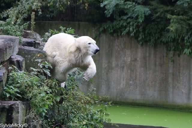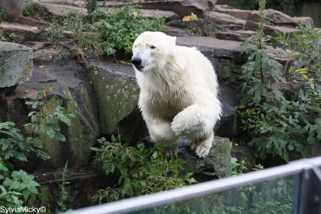 Hier nun meine Aufnahmen vom heutigen Tag bei Knut & Giovanna, erlebte man doch heute nacheinander zwei Eisbären-Teenager auf der Anlage.