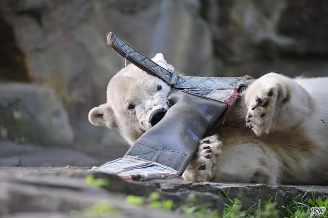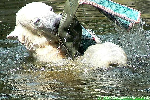 Knut ist heute trotz toben und spielen wunderschön weiß geblieben. Kein Wunder bei den vielen Bädern, die er heute genommen hat.