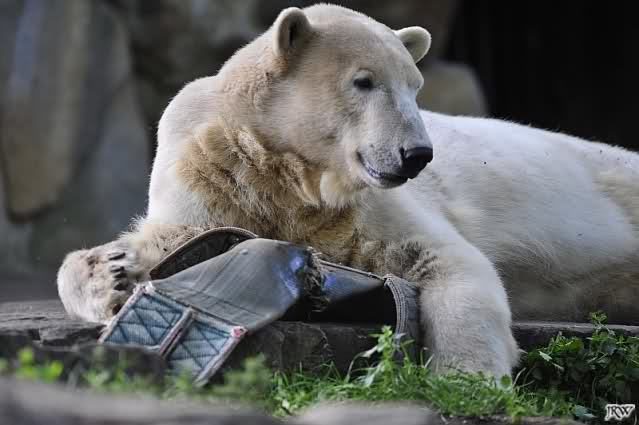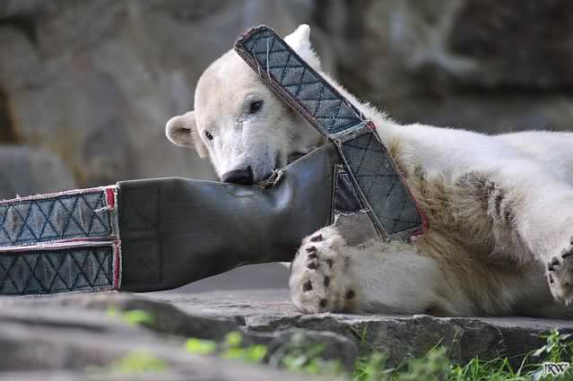 Good evening to you all international Knut friends. Thanks for your greetings and entries today here in forum. It was a wonderful day in Knut City. At the end of the day my little dose of Knut, pictures from yesterday afternoon. Enjoy our polar bear kid.