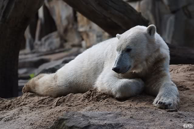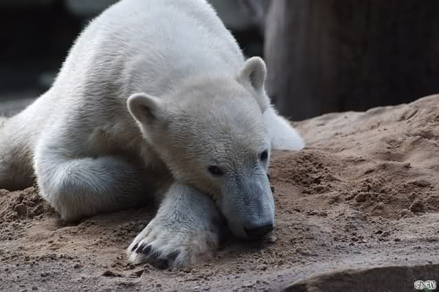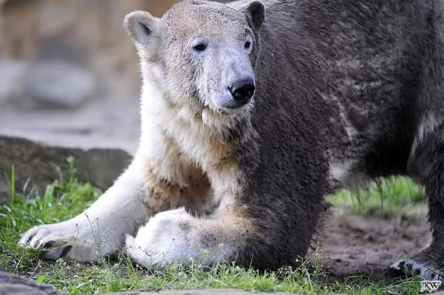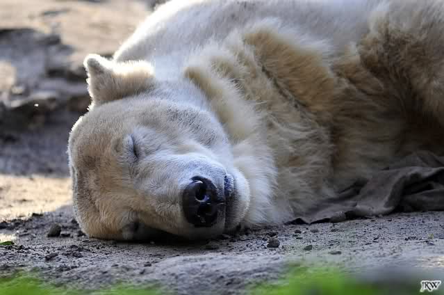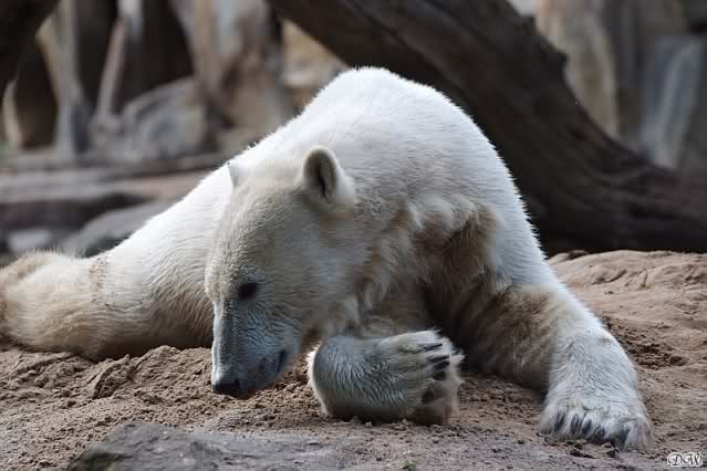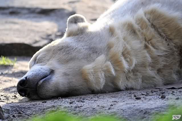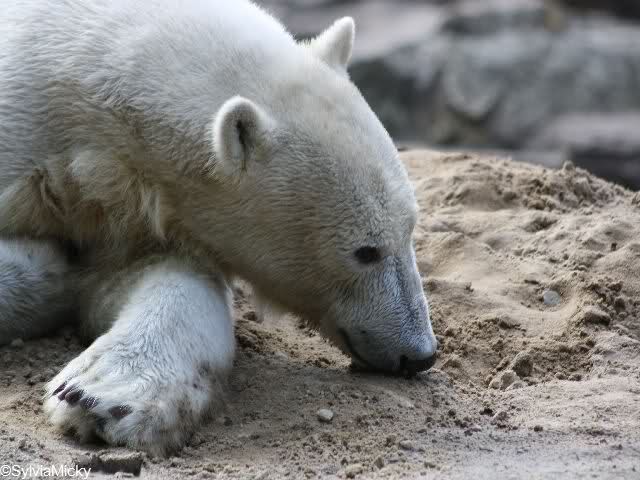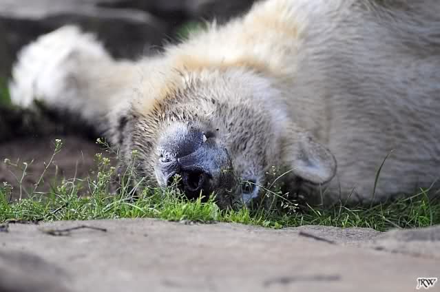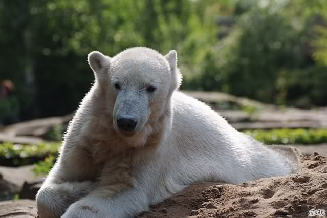 Als ich heute am Spätnachmittag in den Zoo ging ruhte sich Knut auf seinem Sandhügel aus. Nachdem er den ganzen Tag rumgetobt hat.