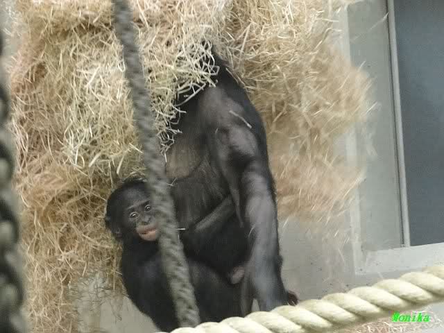 Aketi und Aru hatten den ehemaligen Käfig der Kleinen dazu bekommen und schmusten (hoffentlich bleibt es beim nur Schmusen).