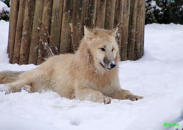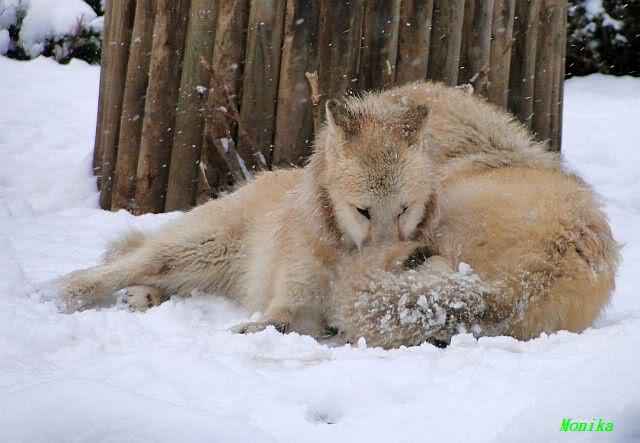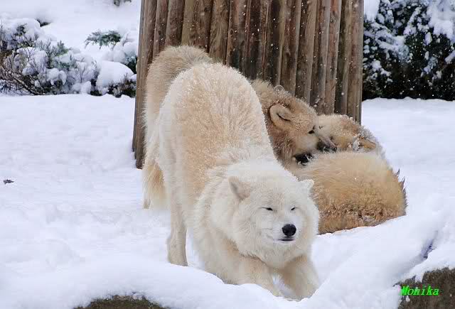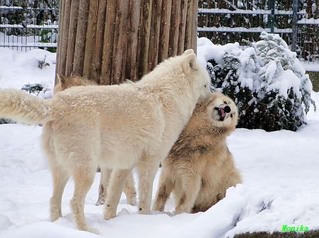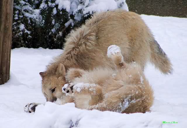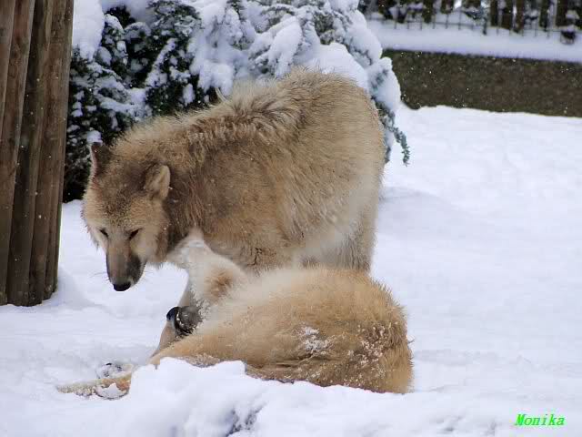 Auch die Wölfe haben viel Spaß im Schnee