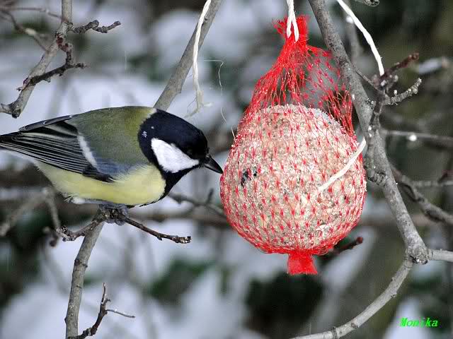 Vor dem Eisbärgehege haben die ersten Tierfreunde die ersten Meisenknödel aufgehangen.
