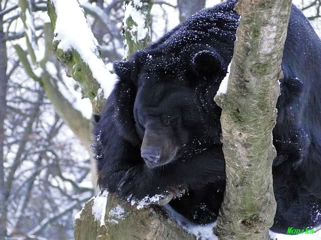 Der Kragenbär schaut sich den Schnee lieber von oben an.