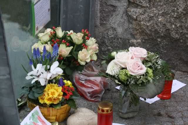 Aber auch andere Kinder und Erwachsene weinten und legten Blumen ab. Aber auch Croissants.