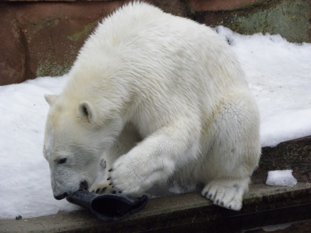 Ich habe auch noch ein paar Bilder von Freitag letzter Woche. Leider war das Wetter wieder ziemlich unterirdisch, ich hoffe so sehr, dass ich noch mal Bärchen bei Sonne im Schnee erleben darf. Raspi war an dem Tag nicht so gut drauf, Flocke hat immer versucht, ihn zum gemeinsamen Spielen zu animieren, aber er hatte keine rechte Lust. Allerdings wurde er etwas munterer, als Flocke ihm den schwarzen Eimer (oder was davon übrig ist) abgejagt hat. Mich freut es ja, zu sehen, dass sie ihm gegenüber so ein Selbstbewusstsein an den Tag legt. Raspi spurtet dann zwar immer hinter Flocke her, um sich sein Spielzeug zurückzuerobern, aber er erwischt sie meist nur, wenn sie sich erwischen lassen will. Sie ist einfach schneller und ich glaube auch ein kleines bisschen cleverer als er