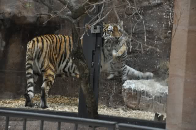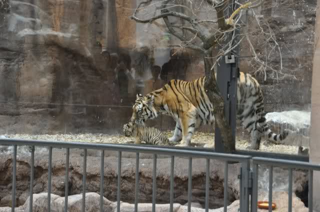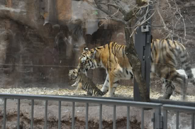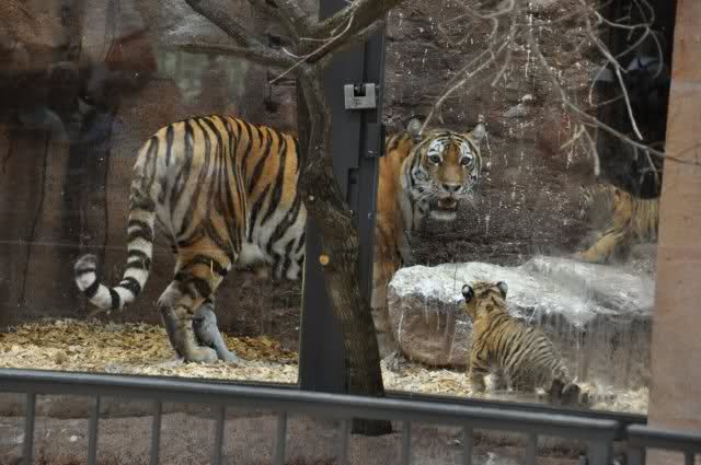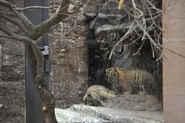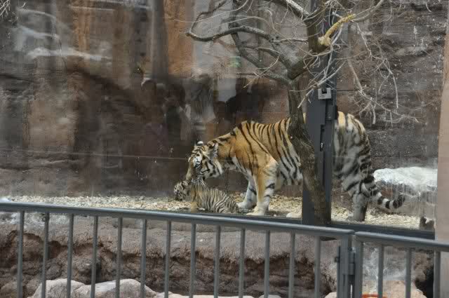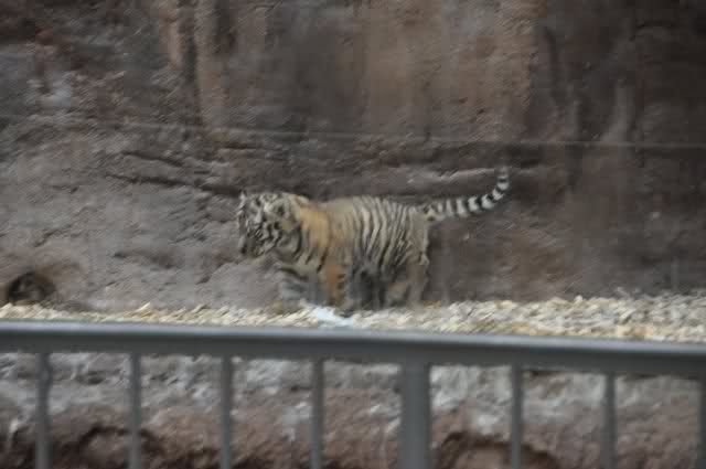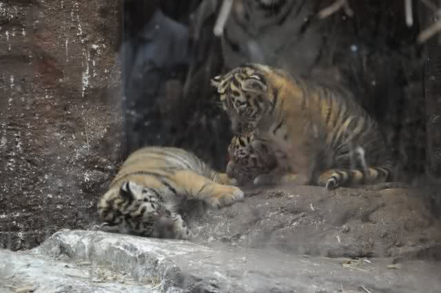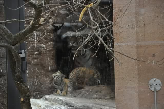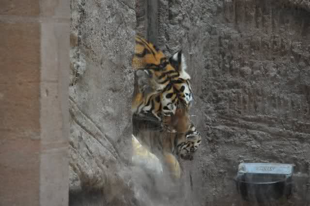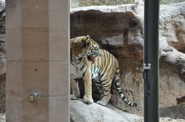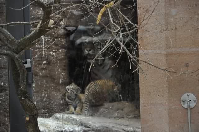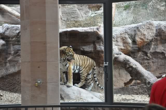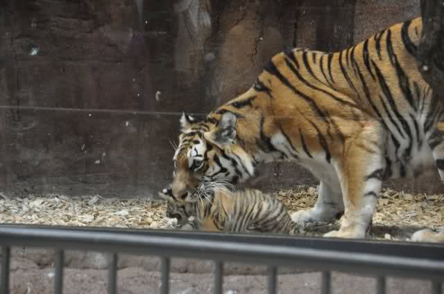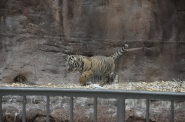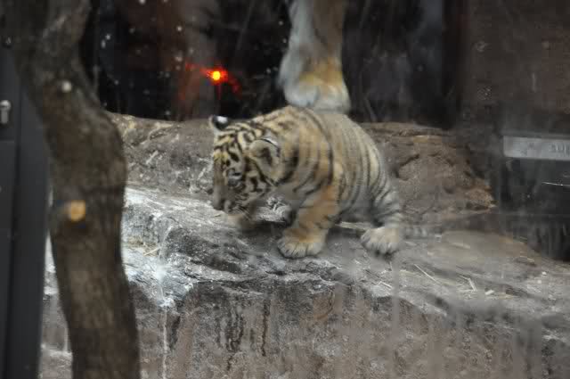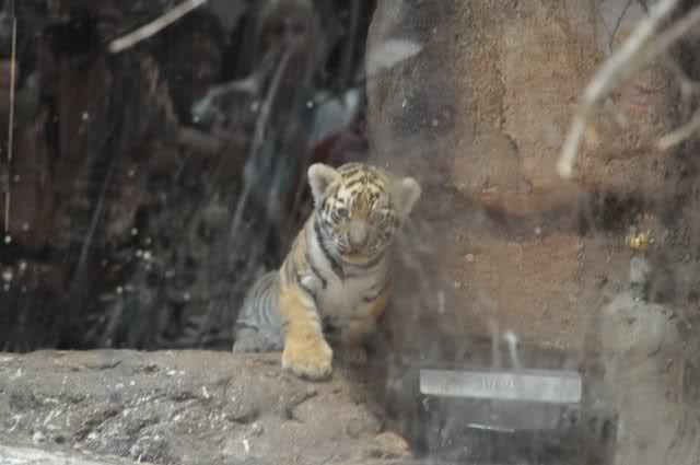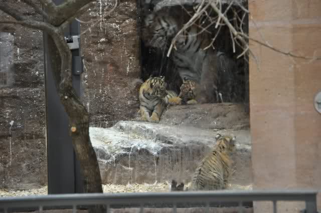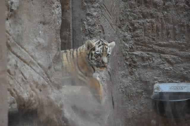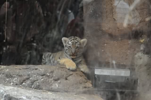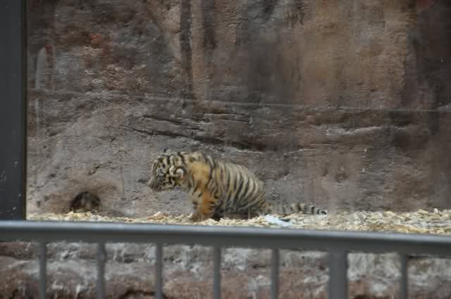 Die kleinen Tiger waren auch zu sehen, leider waren die Scheiben ziemlich verschmiert, so dass die Bilder nicht so gut sind. Leider haben ziemlich viele Leute mit Blitz fotografiert, die Tiger haben sich dadurch zwar nicht sehr beeindrucken lassen, angenehm ist das für so ein Tier aber sicherlich nicht.