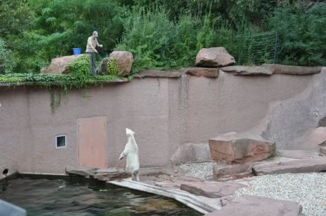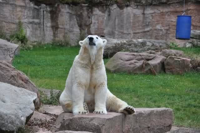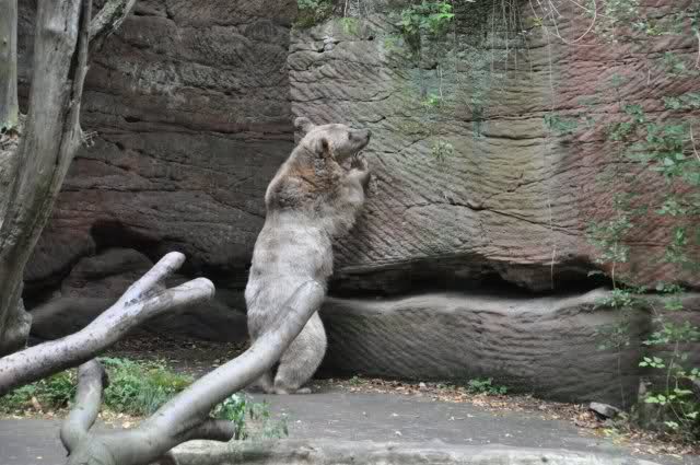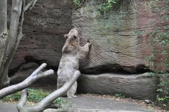 In Nürnberg ist der Braunbär leider alleine. Auf der Tafel dort steht bei Bestand: "fast vollkommen ausgerottet". Das ist sehr schade.