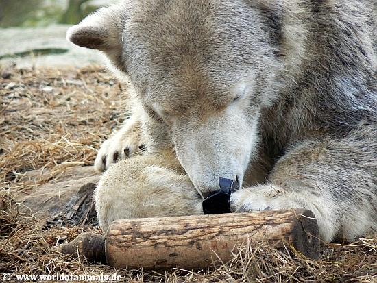 Hier nun meine nächsten Knut Fotos vom Sonntag Nachmittag. Es sind nochmals Close-Ups vom Eisbären. Er spielt immer noch mit dem schwarzen Platikteil.