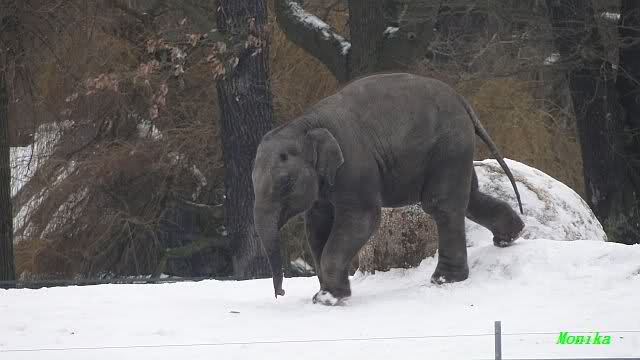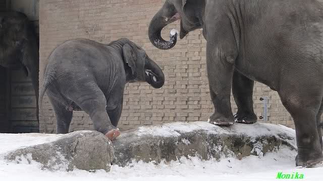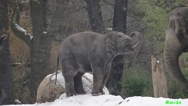 Während die großen Elefanten an der Tür standen und rein wollten, spielte Ko Raya vergnügt im Schnee.