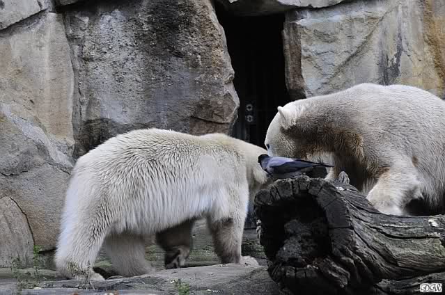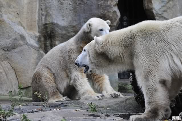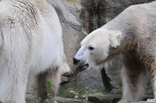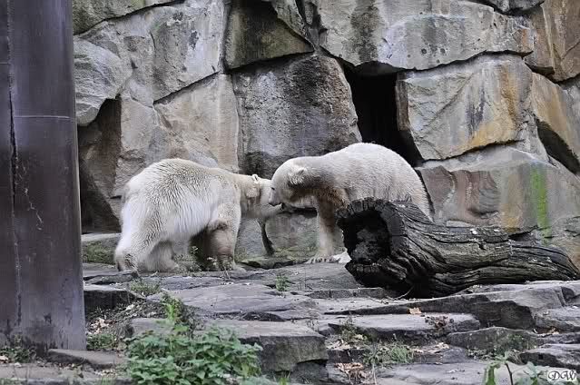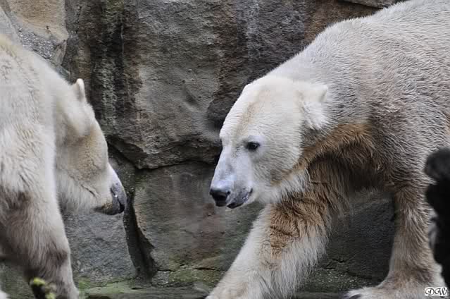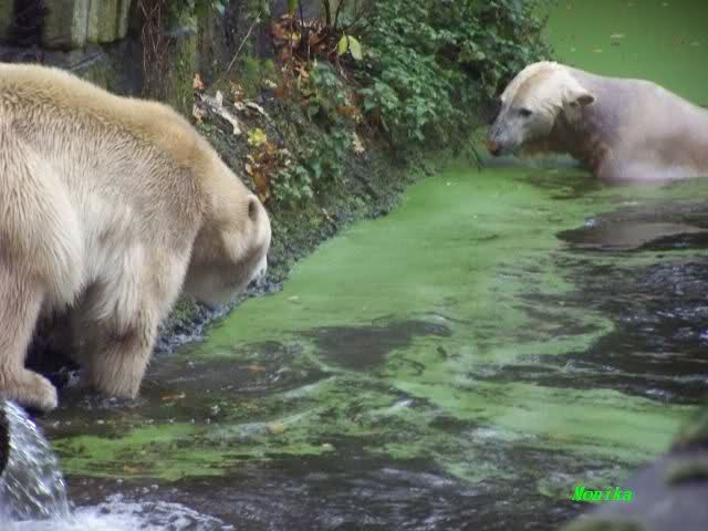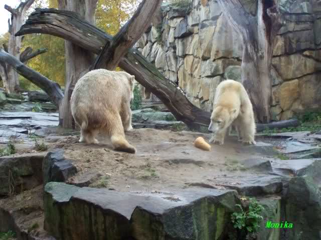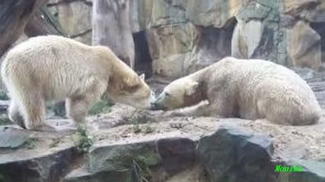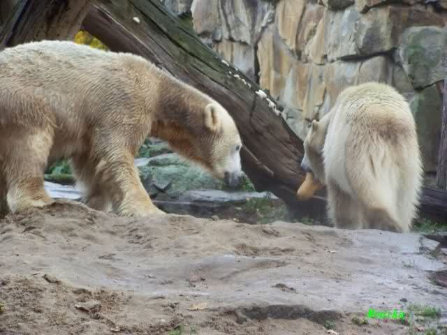 I am very happy to see that our two favourite polar bears are going better together day by day. But I am also very sad for poor Lars: it is almost unbelievable that he is not in his enclosure with his 3 ladies anymore...