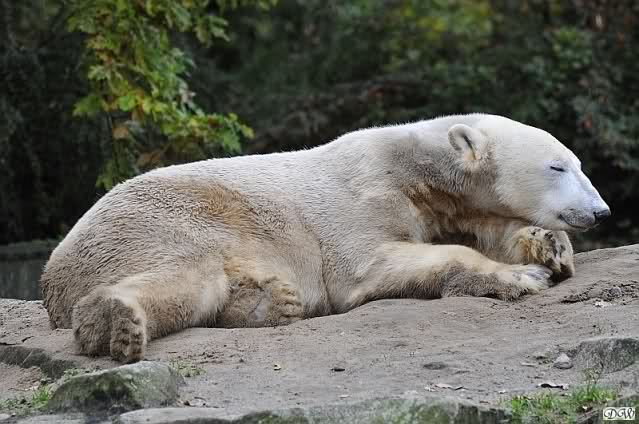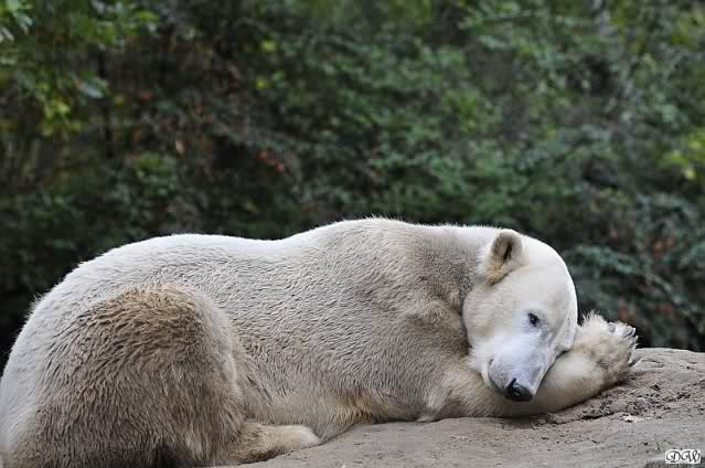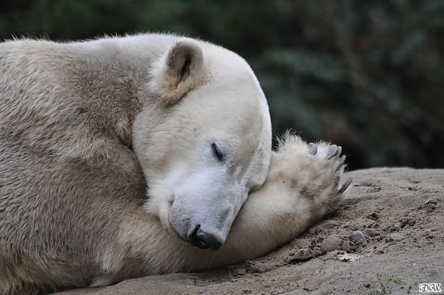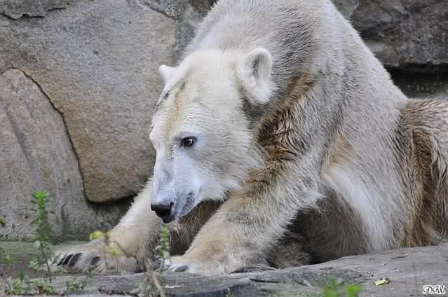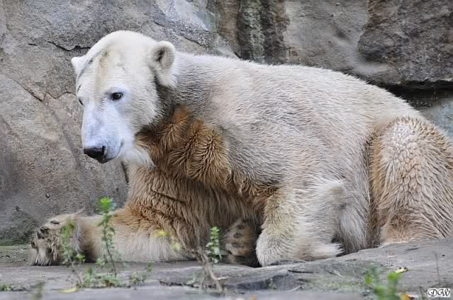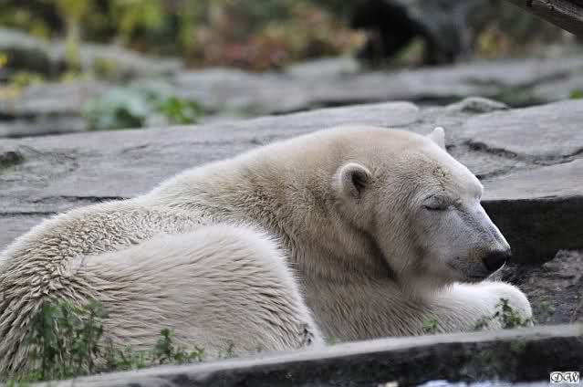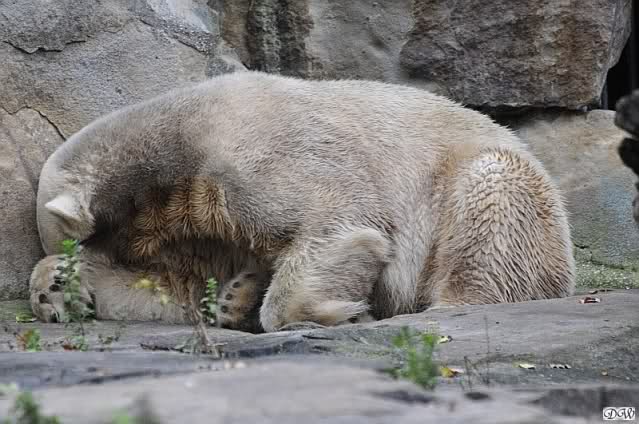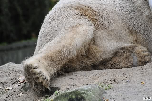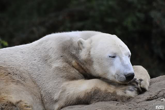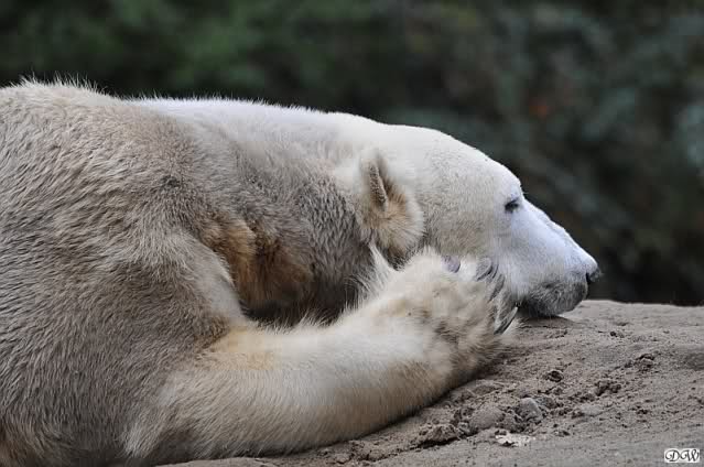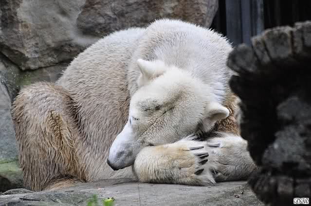 Heute sahen wir einen müden Knut, der alle Annäherungsversuche von Gianna praktisch ablehnte. Bei aller Müdigkeit riskierte er immer wieder ein Auge um zu sehen, ob die Luft rein war.