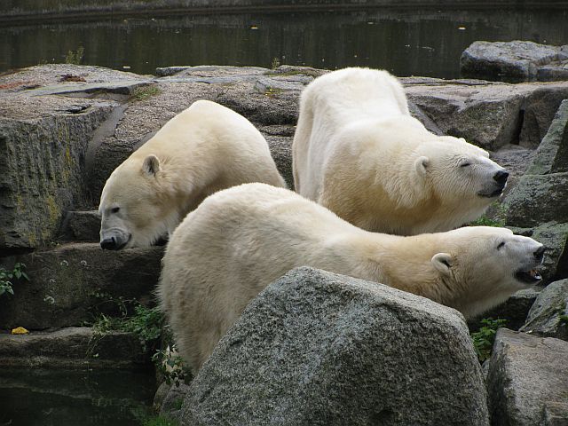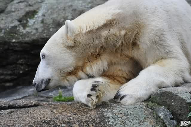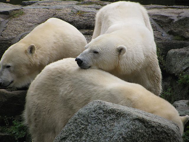Knut lag wie in den letzten Tagen heute früh auf dem unteren rechten Felsen und schlief. Die Großen auch.