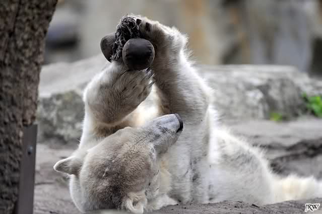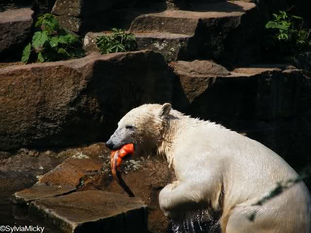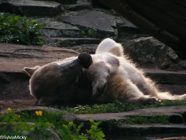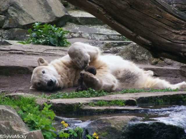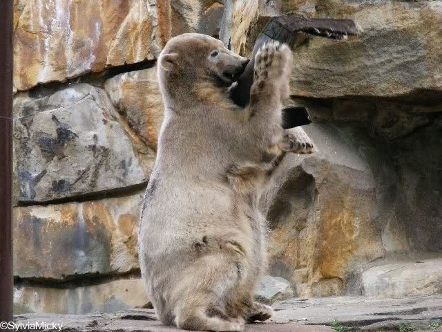 ich wünsche Dir wie auf dem Bild jede Menge Spass und Freude im neuen Lebensmonat. Es sind jetzt schon 29, schade dass Du ihn ohne Deinen Bruder verbringn musst. Ihr wärt sicher ein tolles Gespann gewesen. Ein neues Gehege und dass Du bald eine Freundin bekommst. Hoffentich passiert es bald, denn ich weiss, dass kleine Eisbärjungs neugierig auf kleine Eisbärmädchen werden.