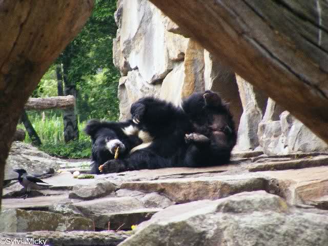 Es war wieder sehr voll im Zoo. Nach der Abendspeisung vergnügte sich Knut mit den Doppelkugeln und holte den von den Krähen geklauten Ochsenschwanz von einer Felsennische zurück.