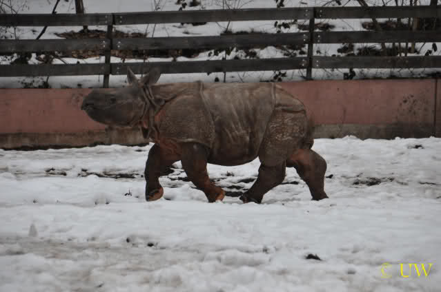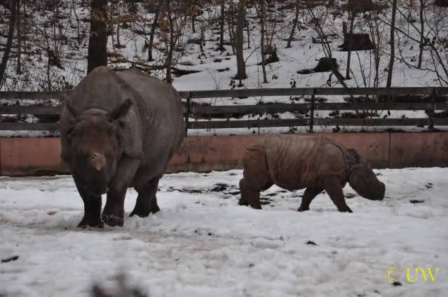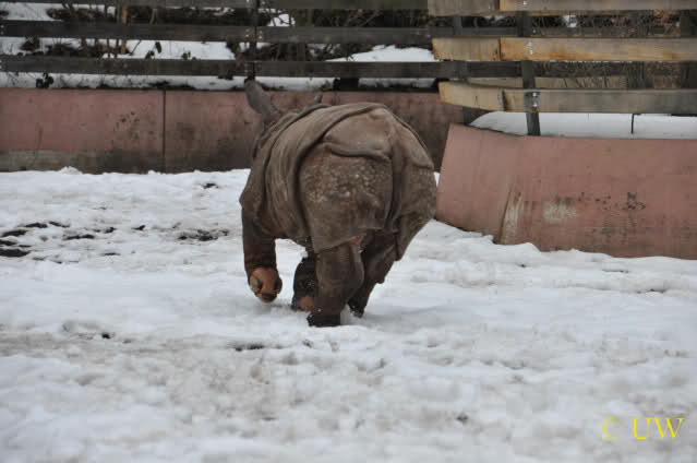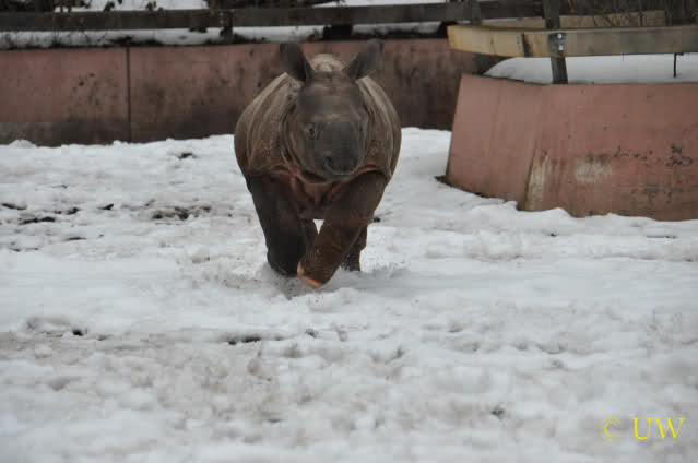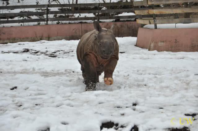 Das Nashörnchen tobte ganz ausgelassen herum, es rannte quer über die Anlage und es ist erstaunlich, welche Geschwindigkeit es erreichen kann - vor allem wenn man bedenkt, dass es vor ca. 2 Wochen gewogen wurde und da 309 Kg auf die Waage brachte.