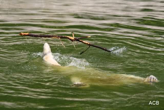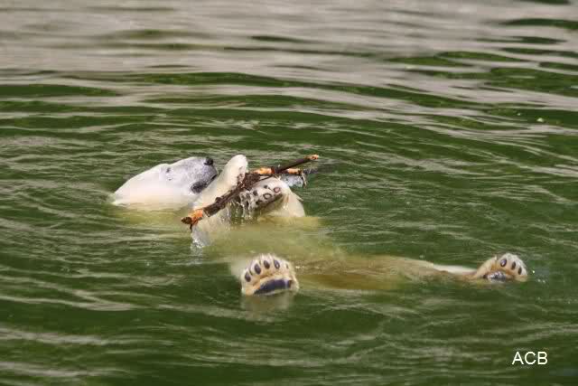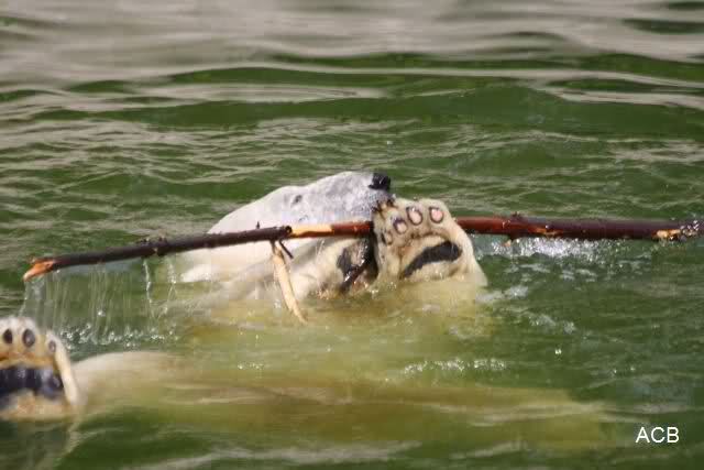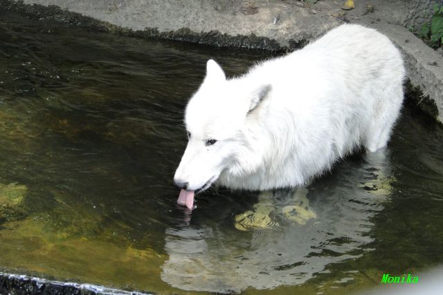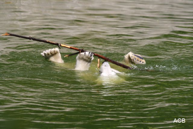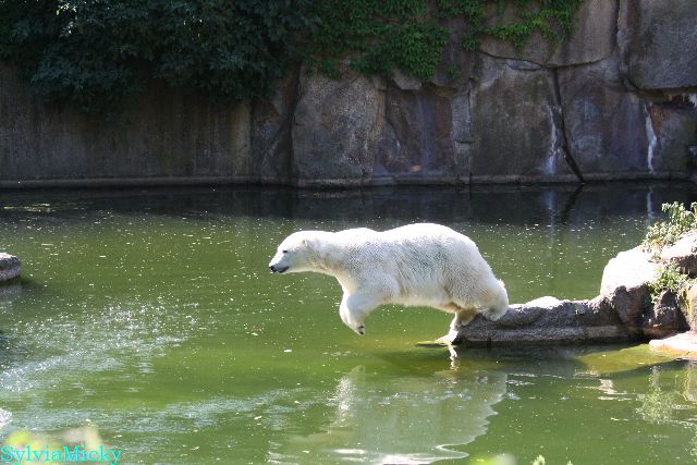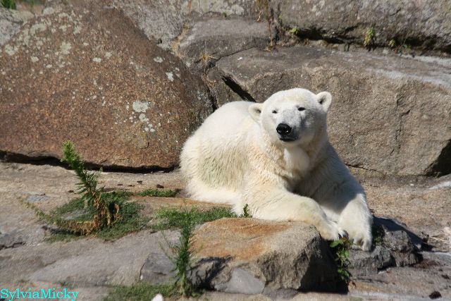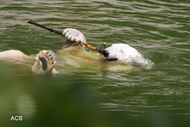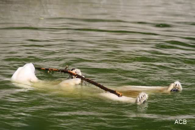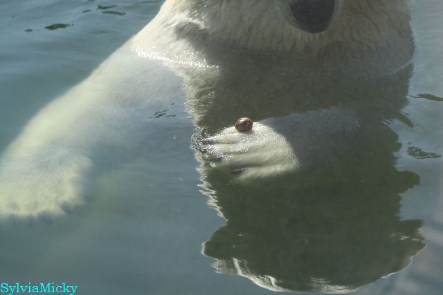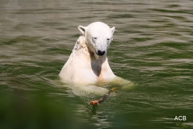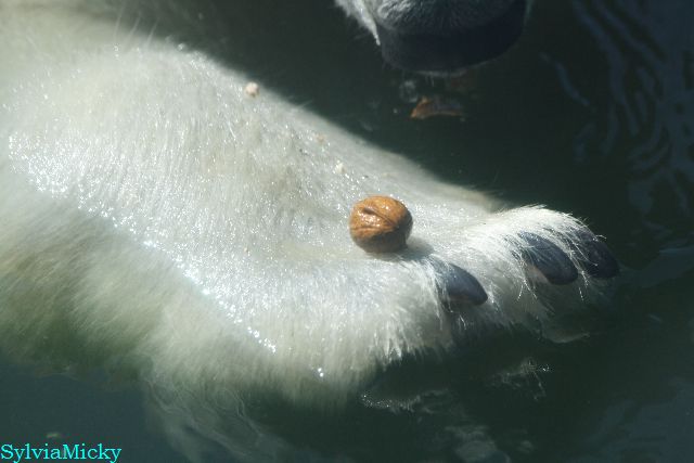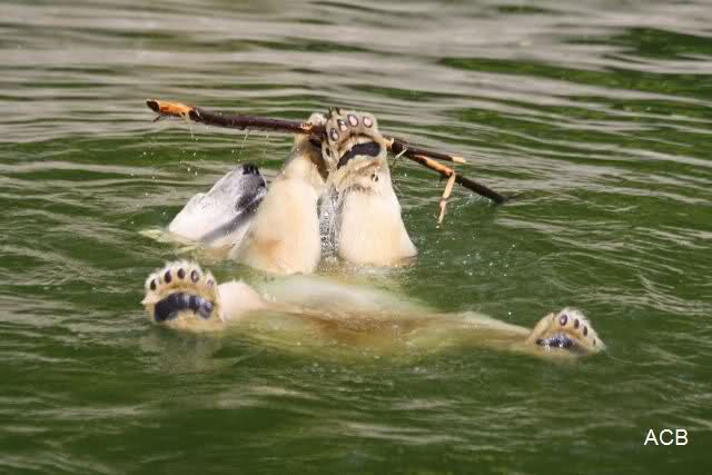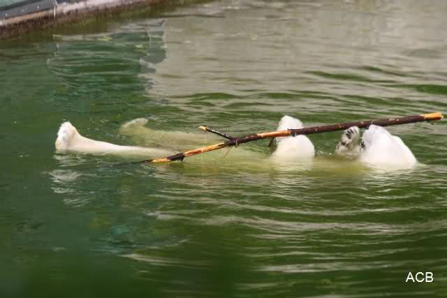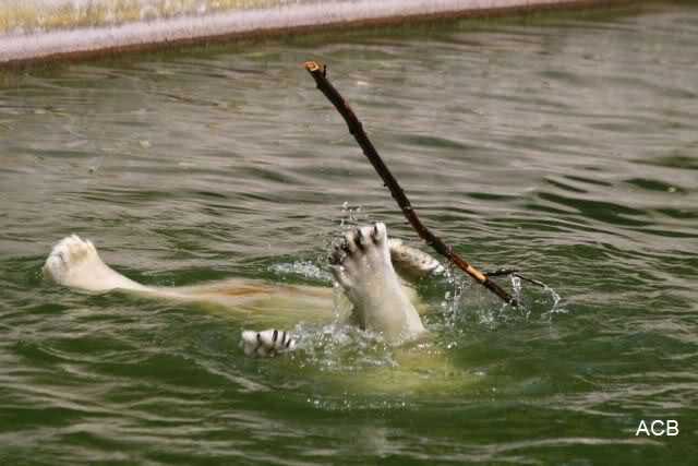 Im großen Eisbären-Becken hatte Nancy viel Vergnügen mit einem Zweig. Es hat sehr viel Spaß gemacht ihr zuzusehen. Viele der Zuschauer hätten bei der Hitze sicher gern mit ihr getauscht