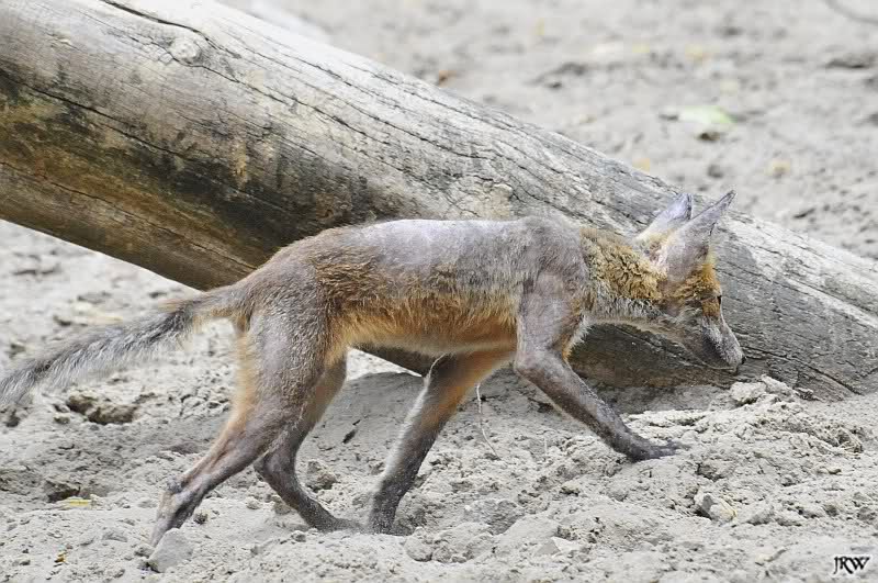 Ein trauriger Anblick. Der kranke kleine Fuchs