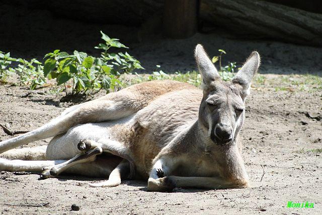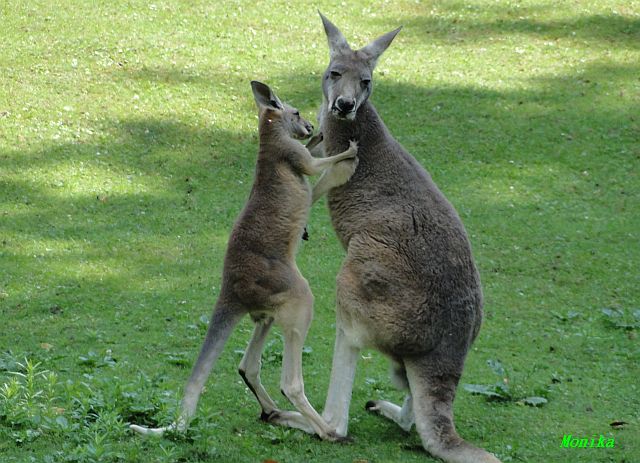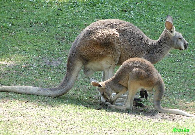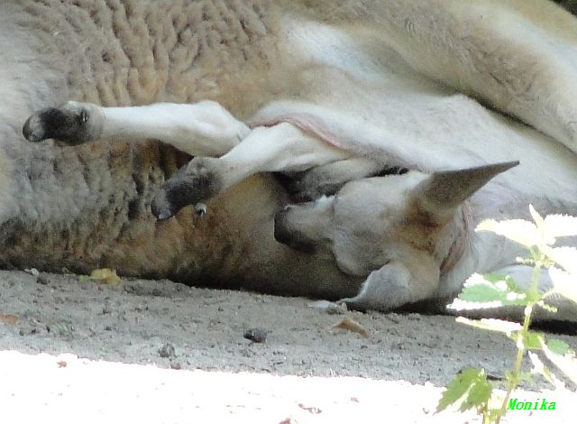 Bei den Riesenkänguruhs gibt es Nachwuchs. Das eine Kleine ist noch im Beutel.