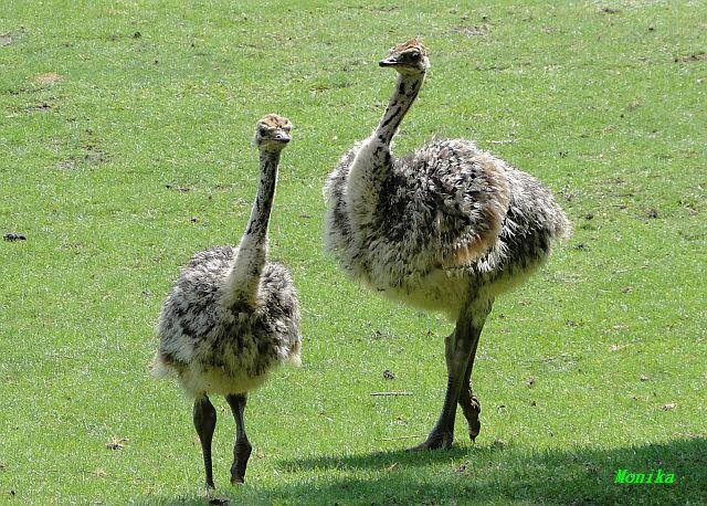 Die Straußenküken sind schon ein ganzes Stück gewachsen.