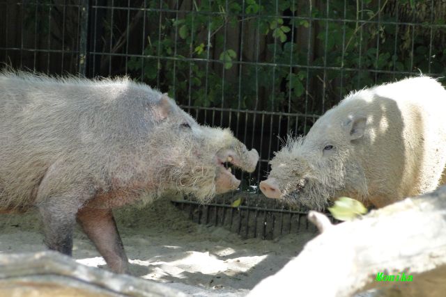 Premiere auch bei Neo. Er war heute das erste Mal mit einem weiblichen Bartschwein zusammen. Neo zeigte überhaupt keine Scheu. Ist immer wieder auf sie zugegangen. Sie war jedoch ziemlich verunsichert, und schnaufte ihn an. Nächste Woche soll ein weiteres Weibchen dazu kommen.