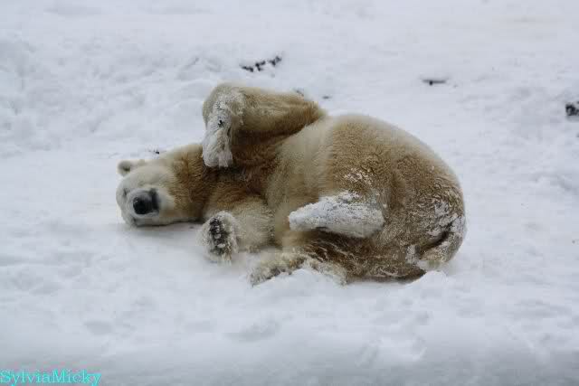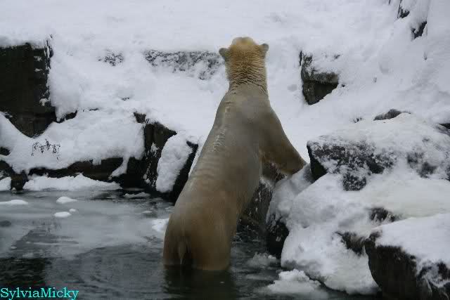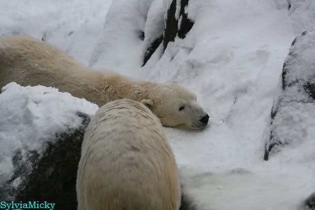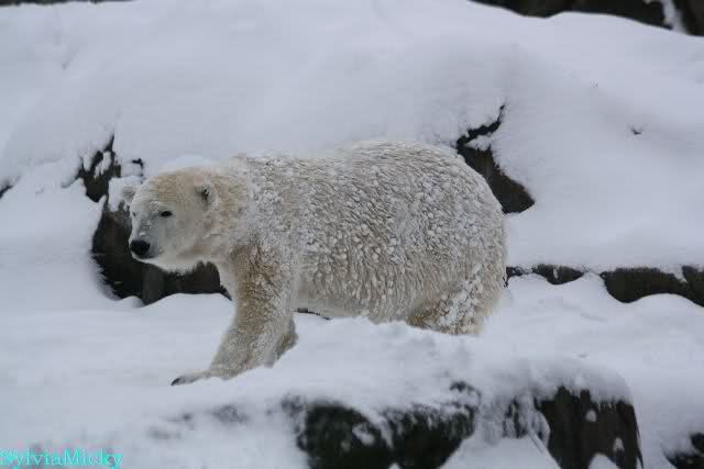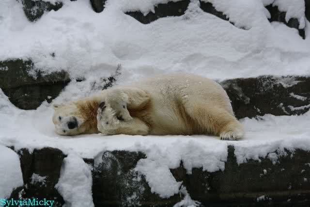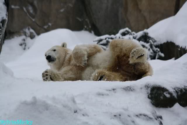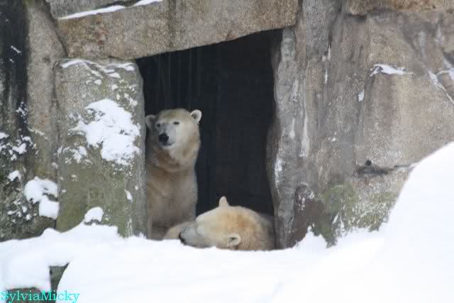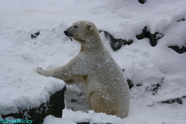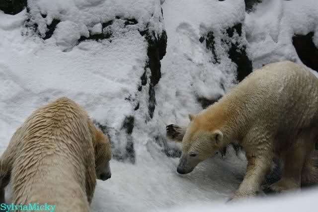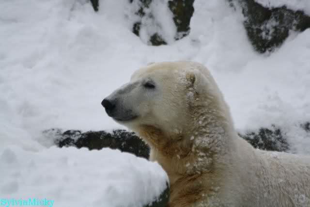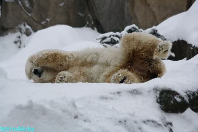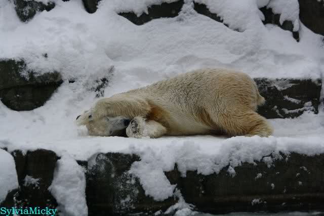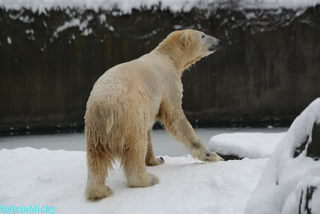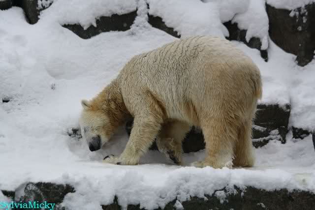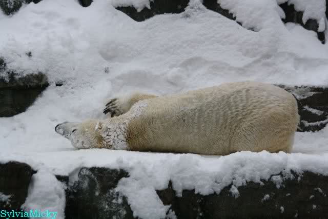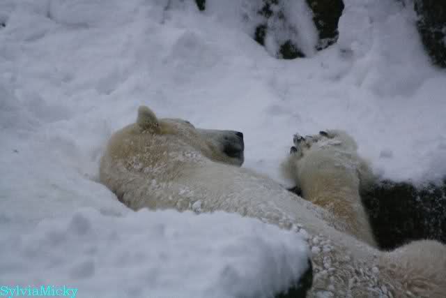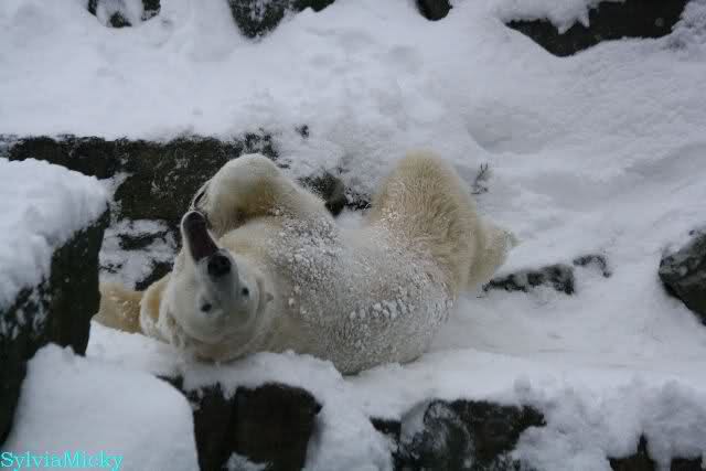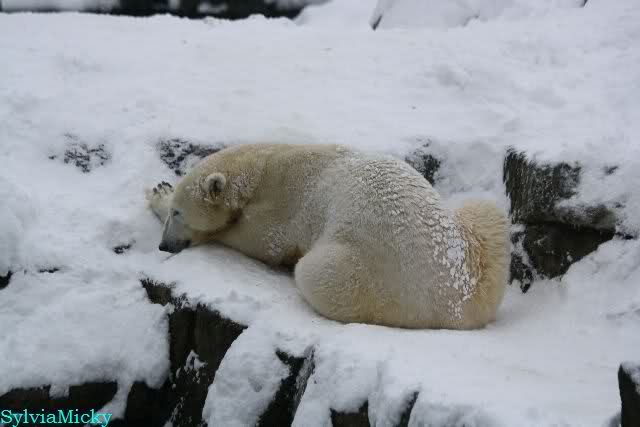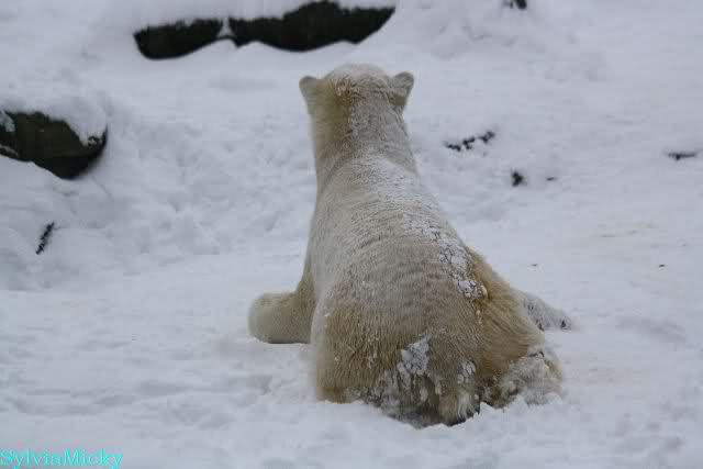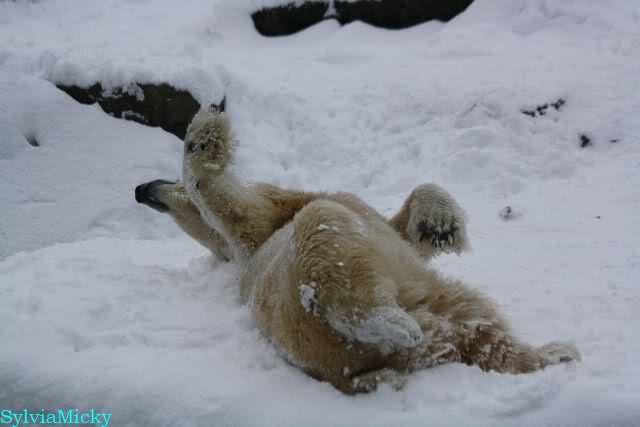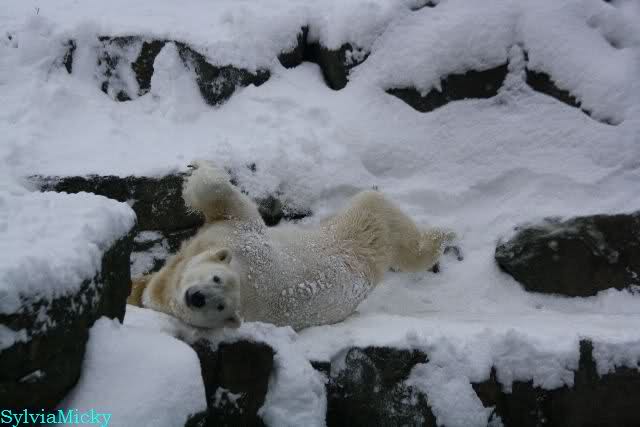 Heute Nachmittag war ich im Zoo. Knut lag in seiner "2 qm Wohnung" und ruhte sich von der Herumtoberei am Vormittag aus. Die drei Bärinnen genossen den Schnee und wälzten sich genüsslich darin herum. Fotos entstanden leider nicht.