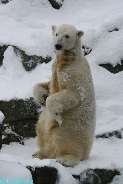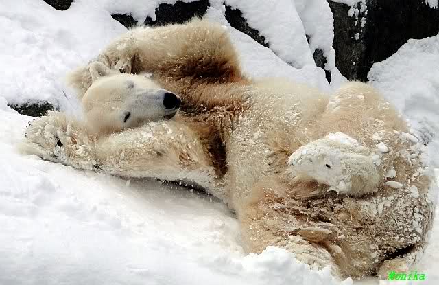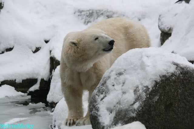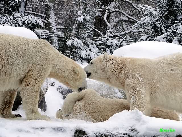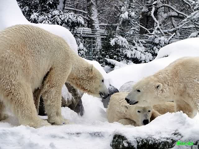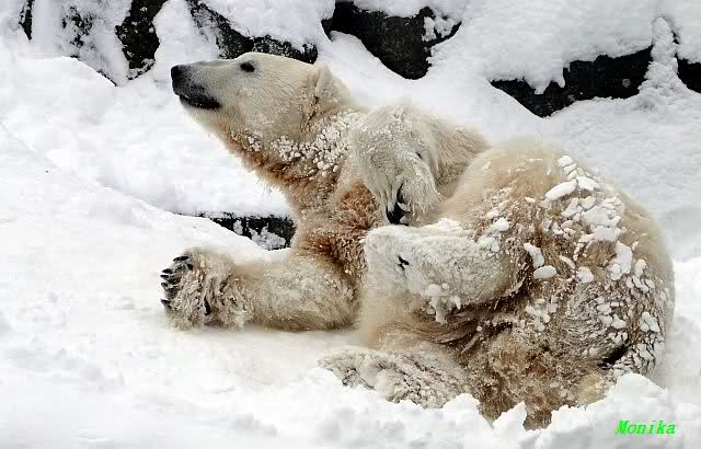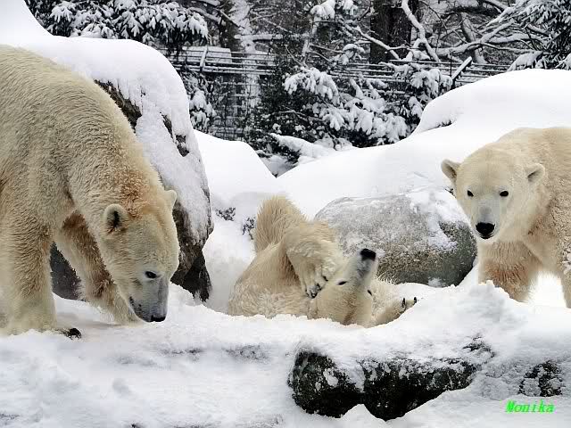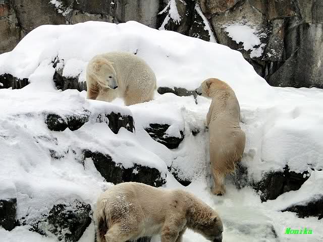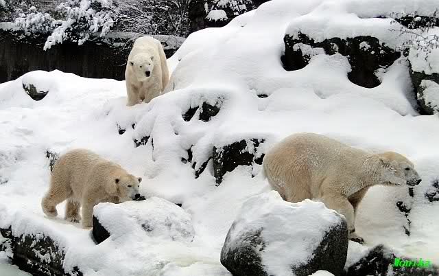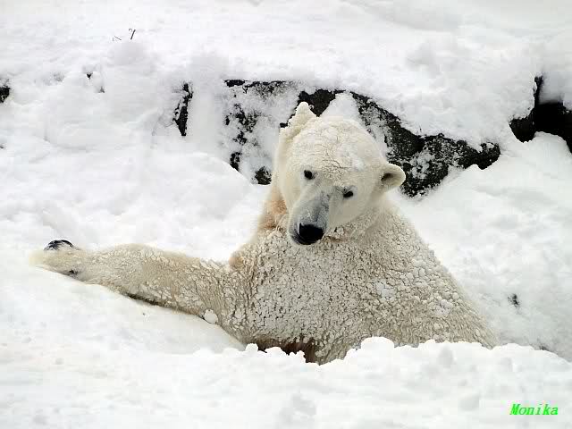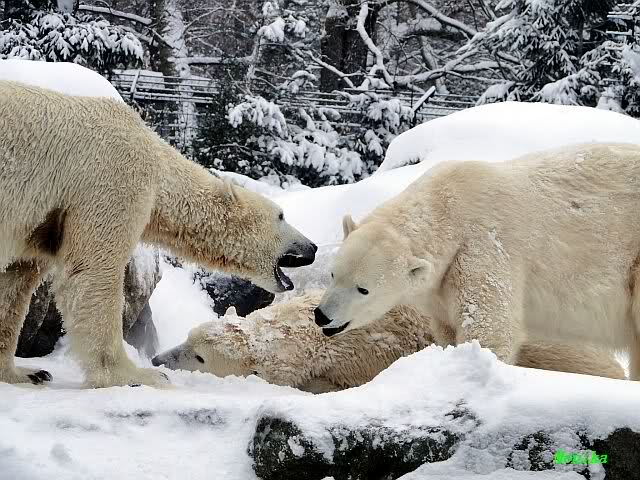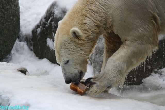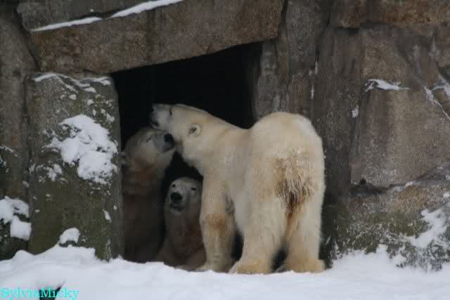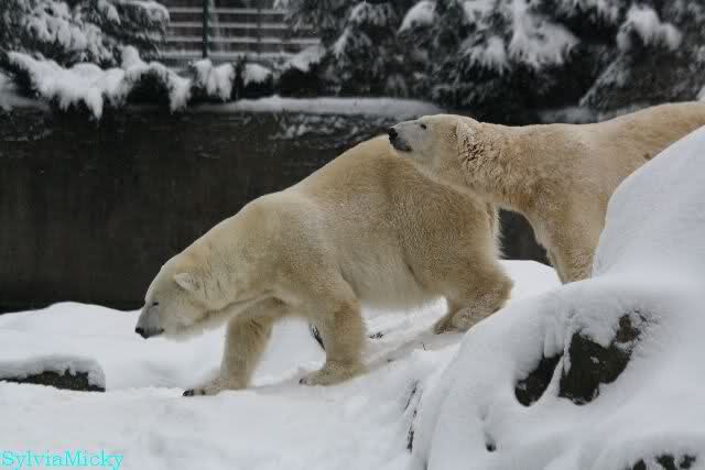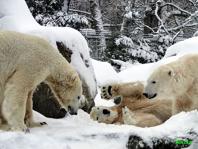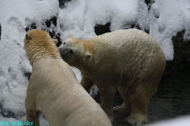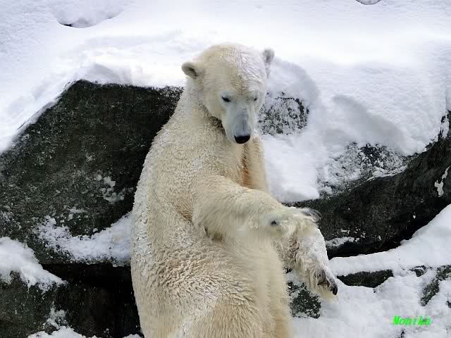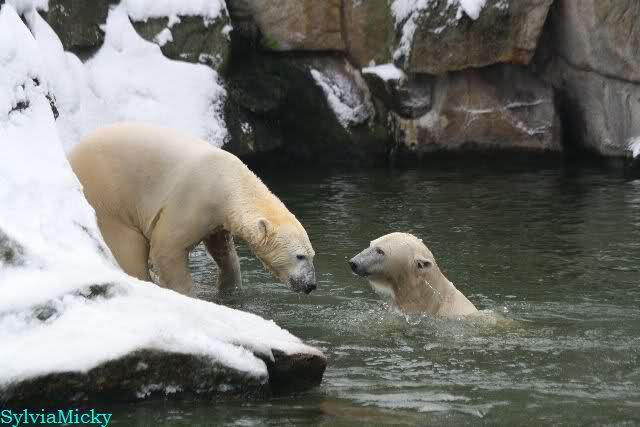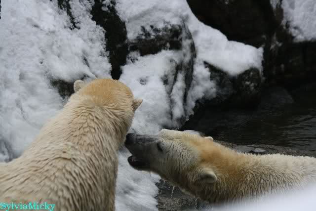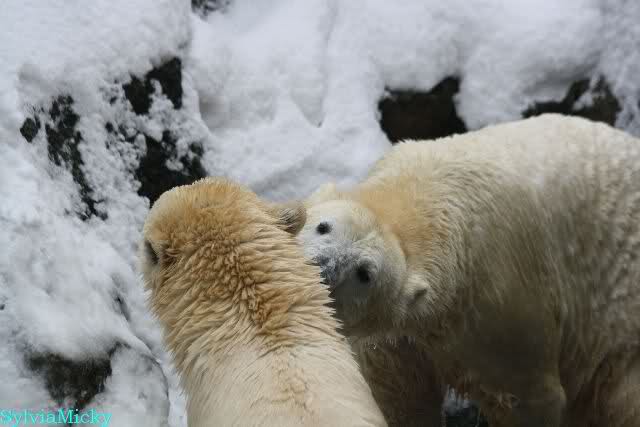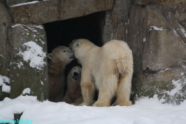 Heute Nachmittag war ich im Zoo. Knut lag in seiner "2 qm Wohnung" und ruhte sich von der Herumtoberei am Vormittag aus. Die drei Bärinnen genossen den Schnee und wälzten sich genüsslich darin herum. Fotos entstanden leider nicht.