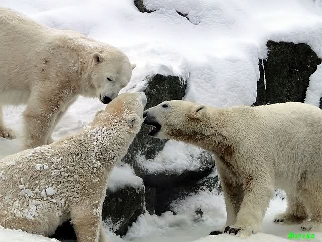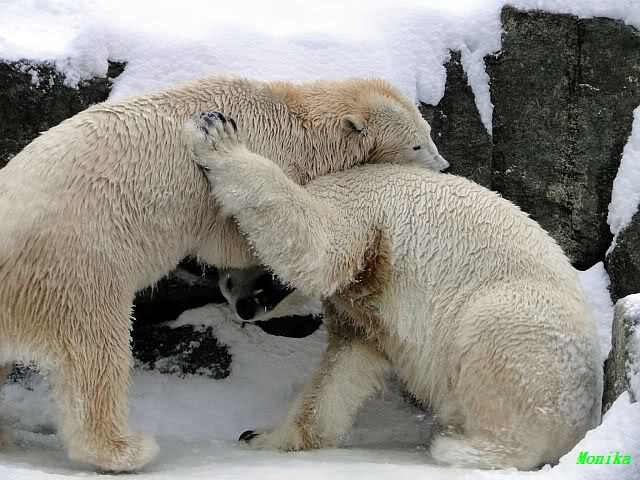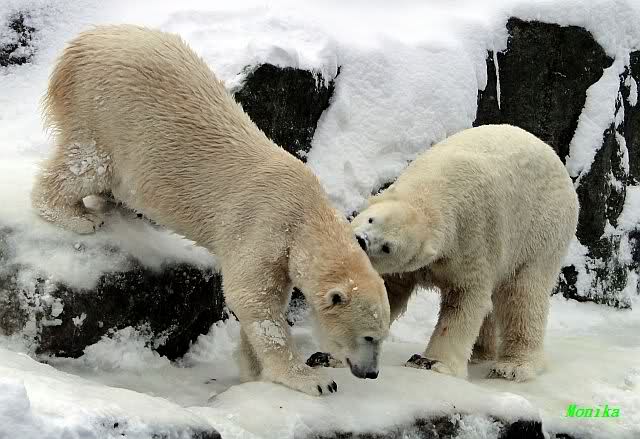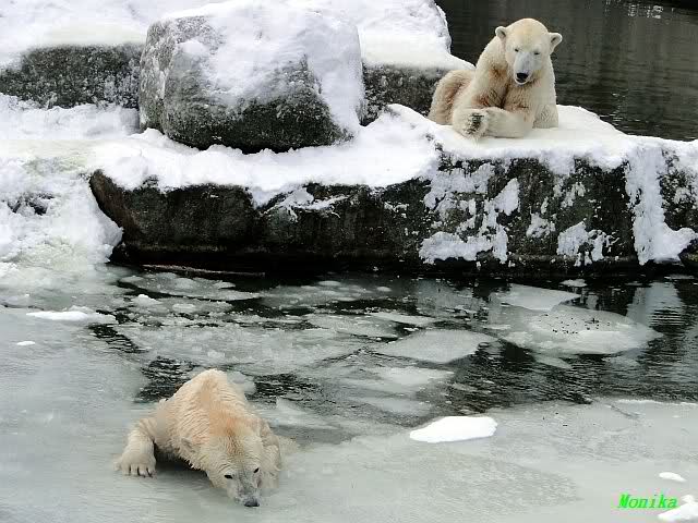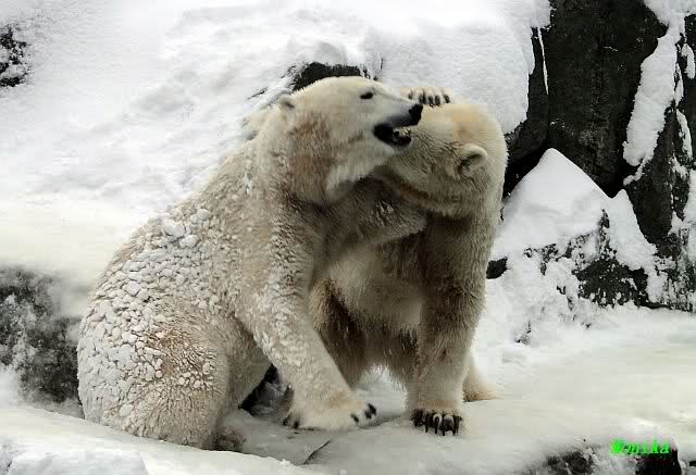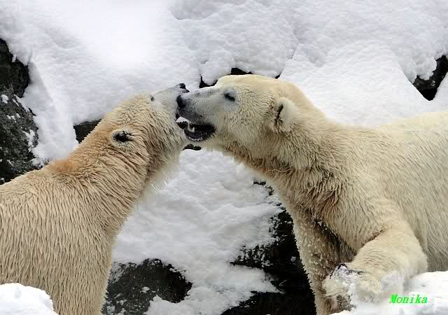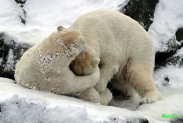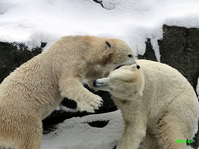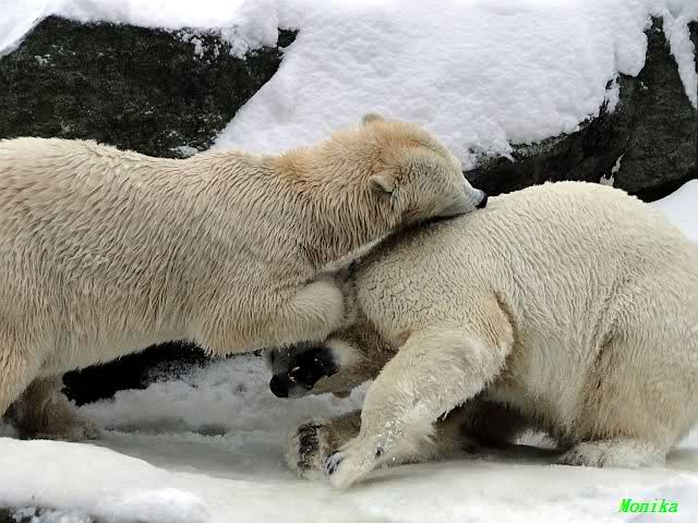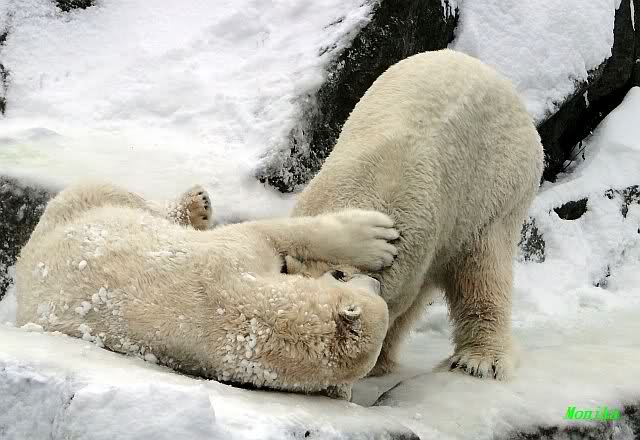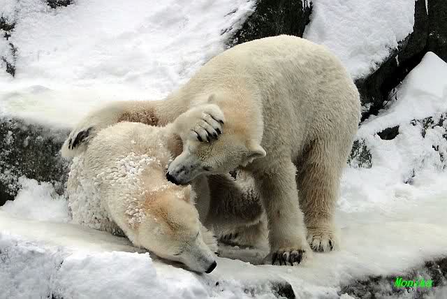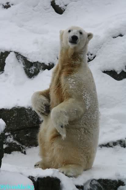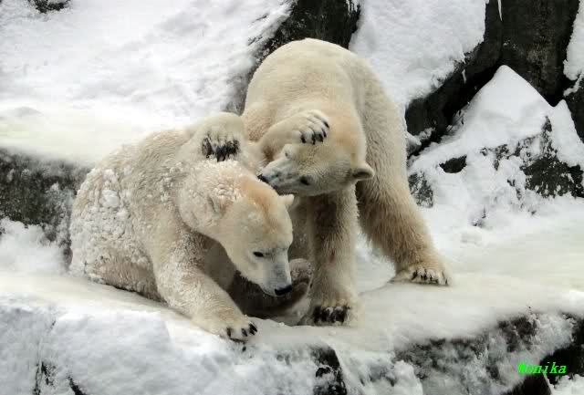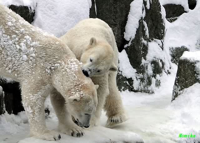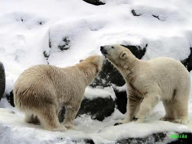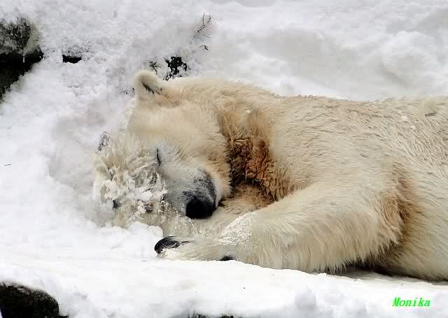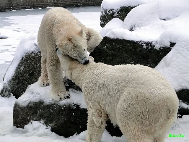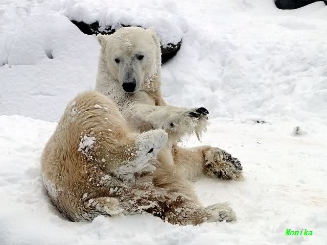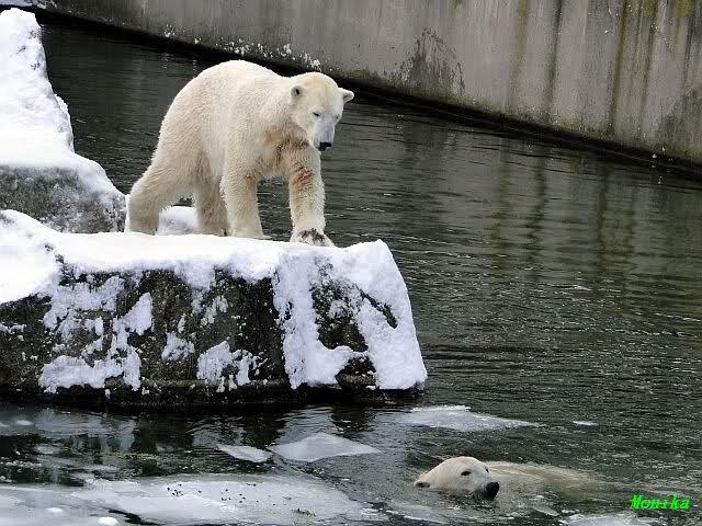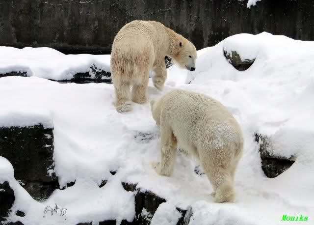 Heute Nachmittag war ich im Zoo. Knut lag in seiner "2 qm Wohnung" und ruhte sich von der Herumtoberei am Vormittag aus. Die drei Bärinnen genossen den Schnee und wälzten sich genüsslich darin herum. Fotos entstanden leider nicht.