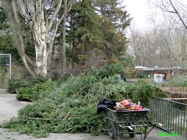 Es sieht so aus, als werden die Bäume, zumindest einige, vor dem Vogelhaus gefällt. Auch die Bank wurde entfernt. Es soll ja nun mit dem Abriss des Vogelhauses begonnen werden. Arme Tosca, sie wird wohl in nächster Zeit nicht zur Ruhe kommen.