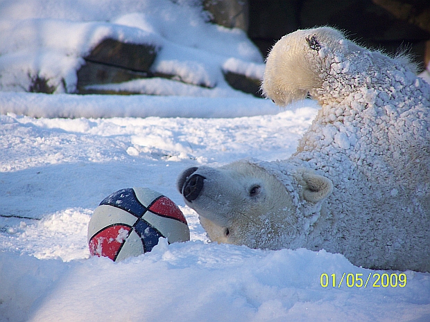 Am 5. Januar 2009 gab es in Berlin einen Wintereinbruch mit viel Schnee. Für Knut eine große Freude. Heute erhielt ich nun von Monika viele Aufnahmen, die sie an diesem Morgen im Zoo gemacht hat. Es sind Aufnahmen die einen glücklichen Eisbären im Schnee zeigen. Mehr Bilder gibt es dann noch in den nächsten Tagen.