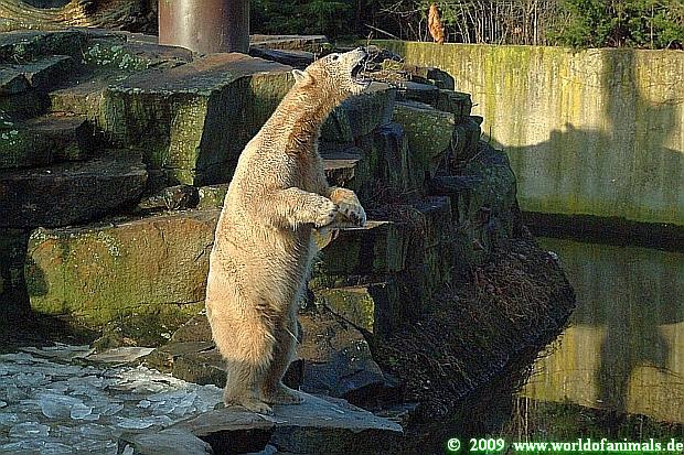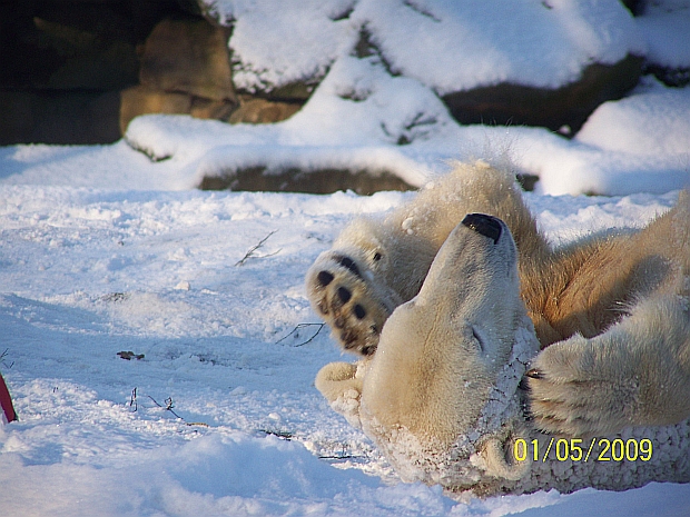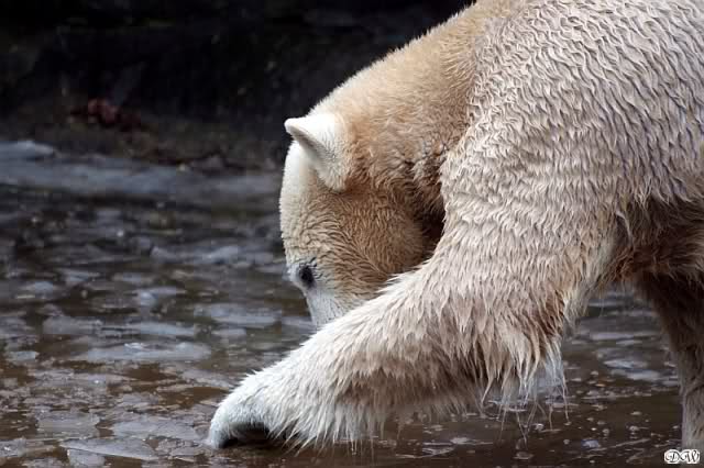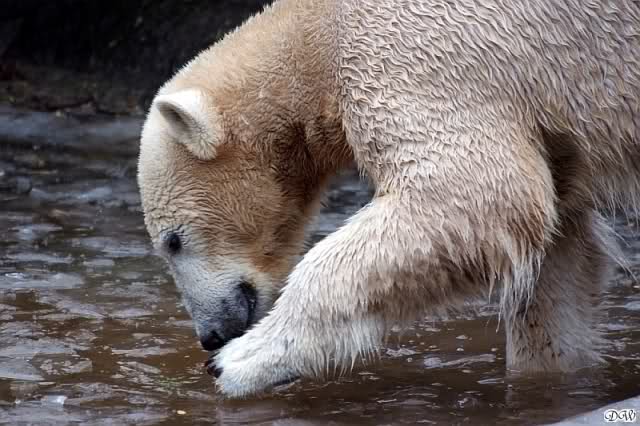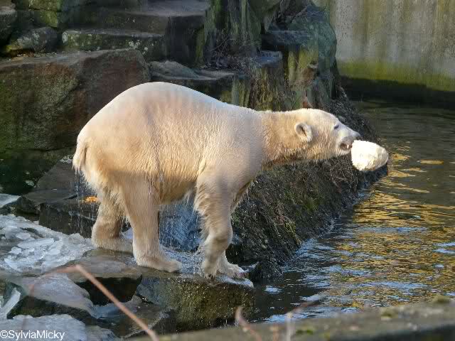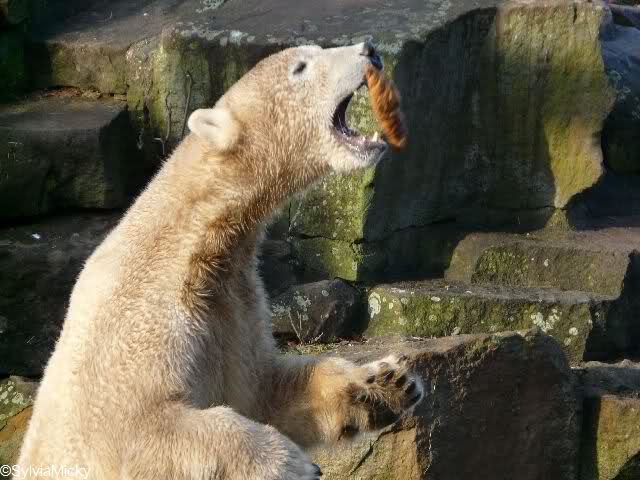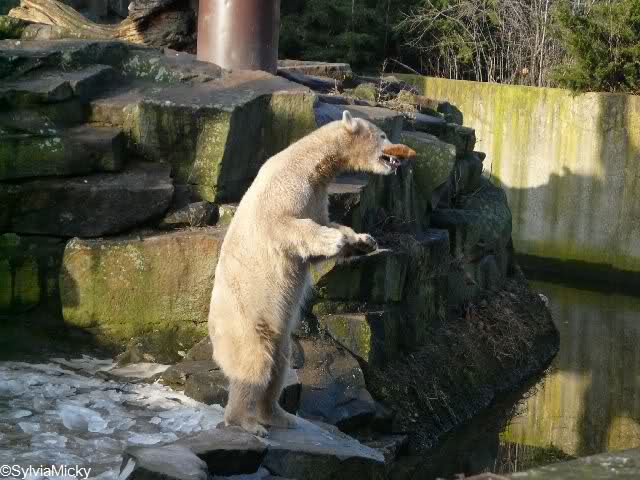 Als mir Monika heute im Zoo einige dieser Fotos zeigte, strahlte sie über das ganze Gesicht und zwar deshalb, weil wir auf der Arbeit waren und sie die tollen Bilder machen konnte. An diesem Tag passte auch alles zusammen: Schnee, strahlender Sonnenschein und ein glücklicher Knut. Herzlichen Dank für's Zeigen.