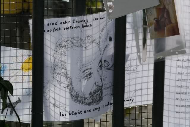 Heute wurden im Minutentakt Blumen, Briefe, Fotos an der Anlage und vor dem Löwentor abgelegt.