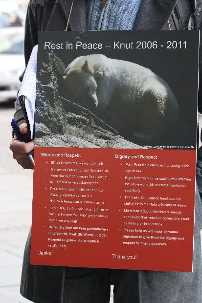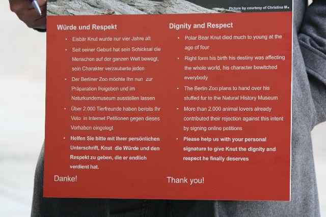 Vor dem Löwentor stand ein Knutfreund und sammelte Unterschriften gegen das Ausstellen von Knut im Museum