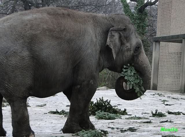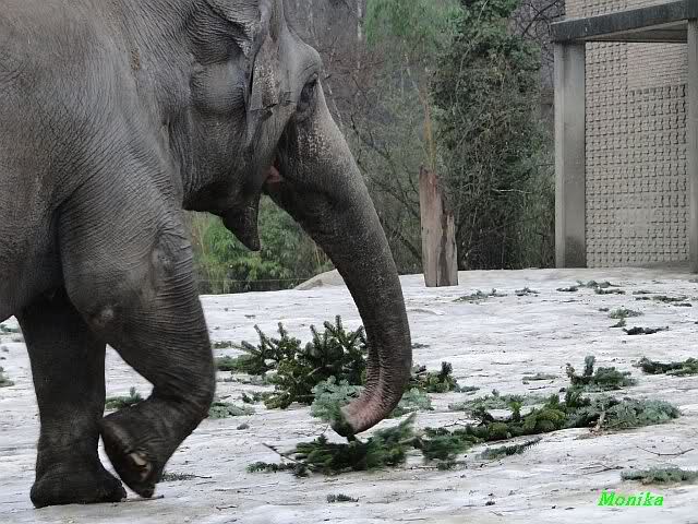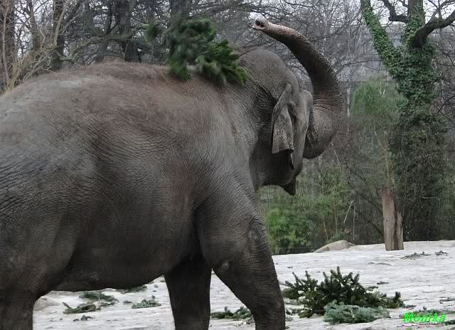 auch bei den Elefanten gab es Tanne.Die Zweige waren über die ganze Anlage verstreut.