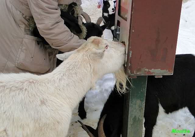 Die Ziege wartet , dass Jemand den Automat betätigt.