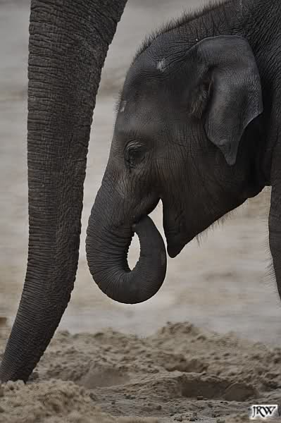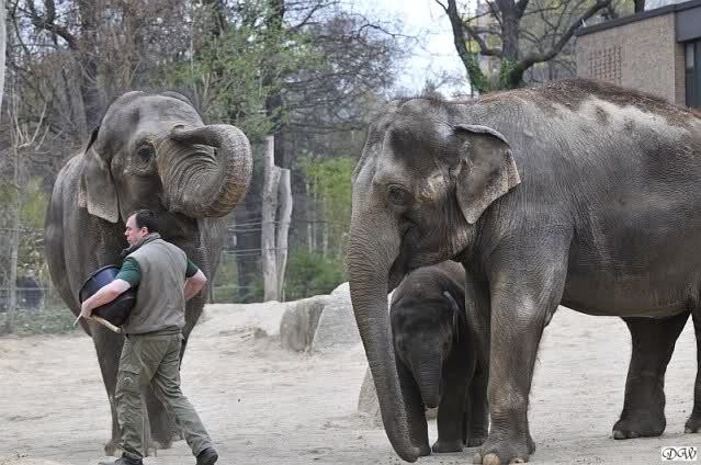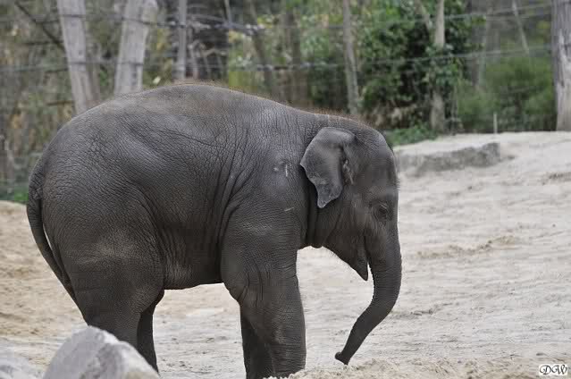 Zur Freude der Elefanten verteilte ein Pfleger Pellet auf der Anlage