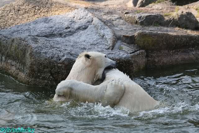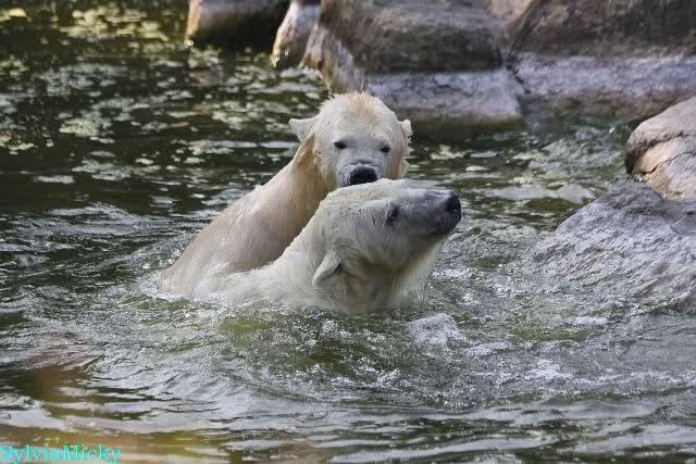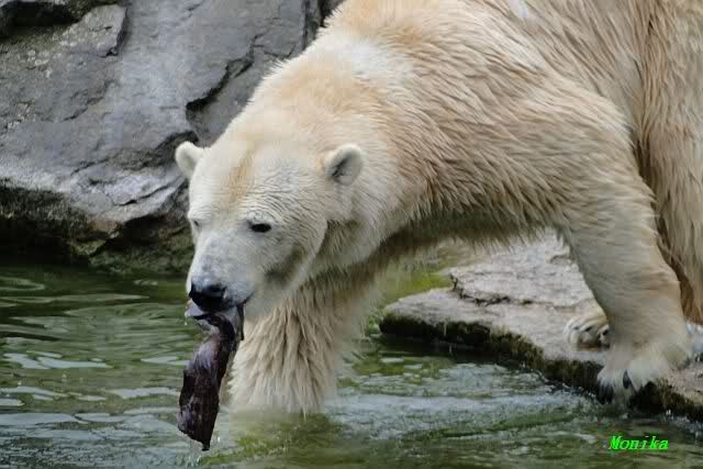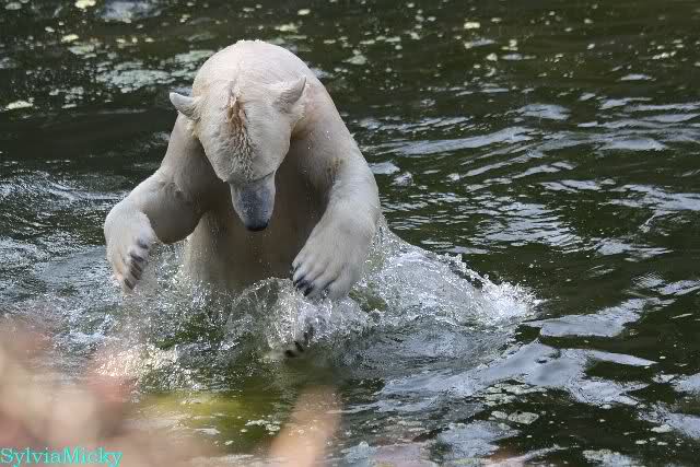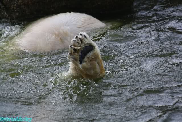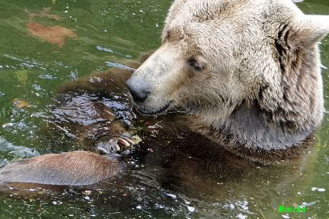 Siddy spielte im Wasser mit Blätter und fraß sie auch.
