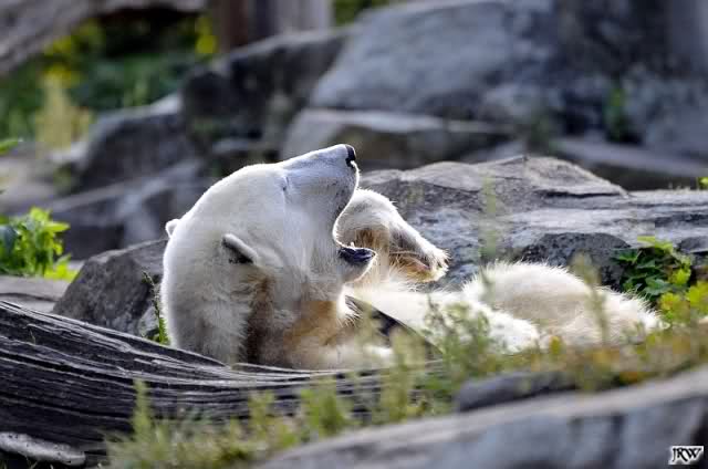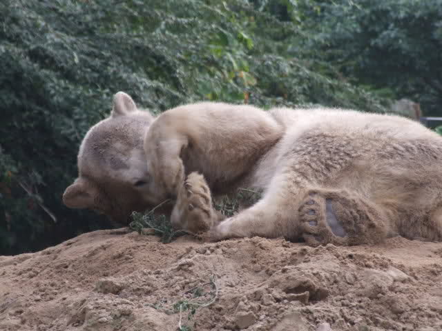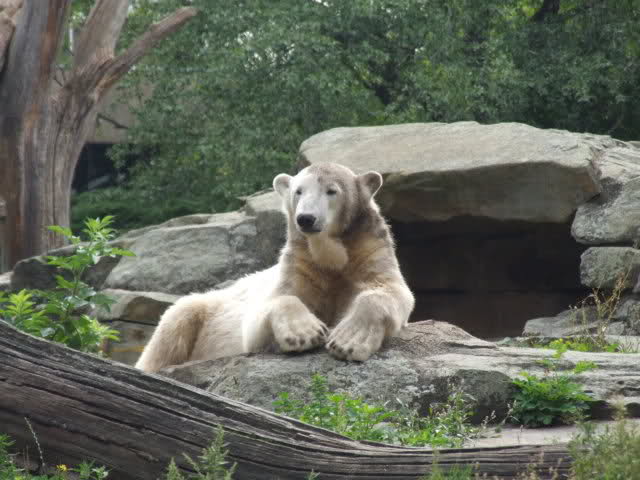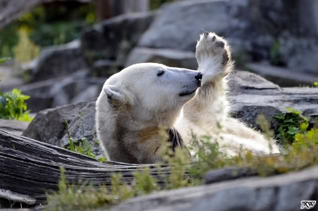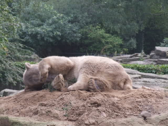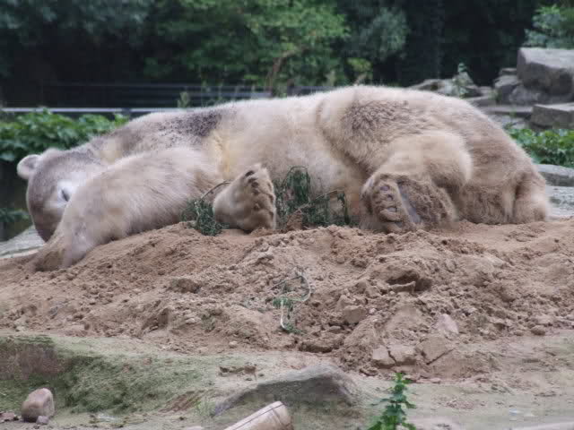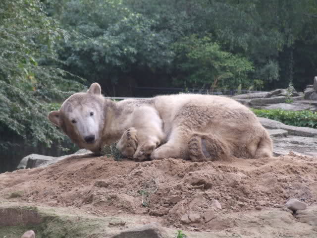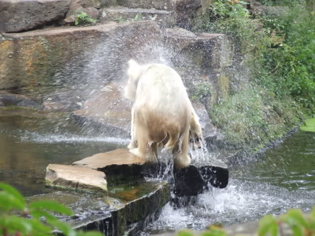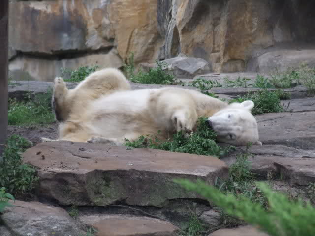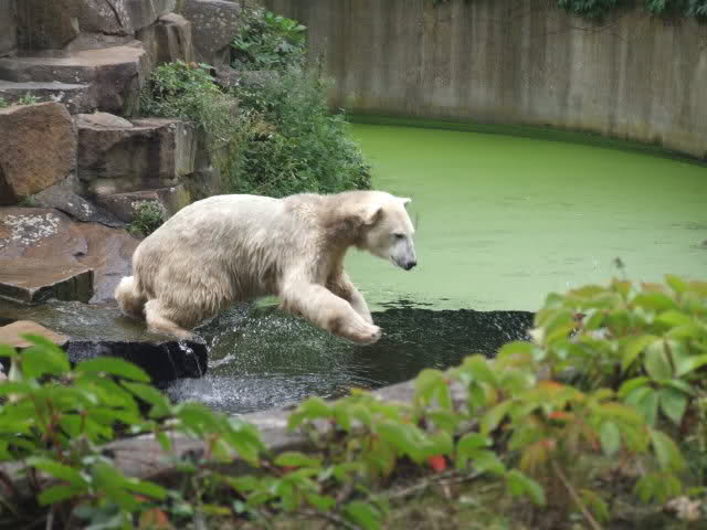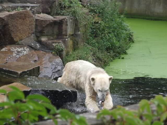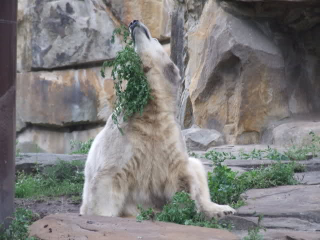 Knut bekam heute ein großes Stück Fleisch, daß er auch über die Anlage schleppte. Außerdem Fische, Obst und Brötchen, also reichlich. Er fühlte sich sichtlich wohl.