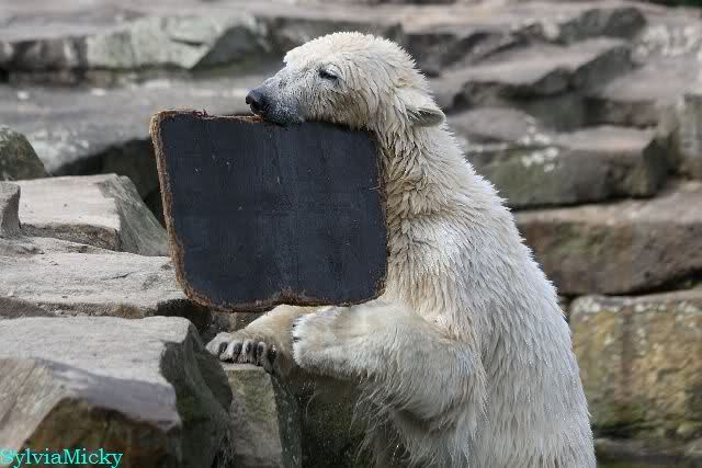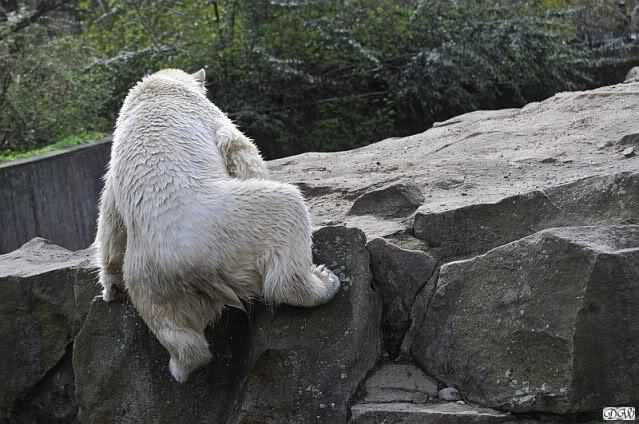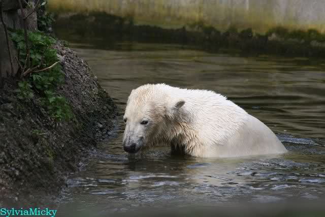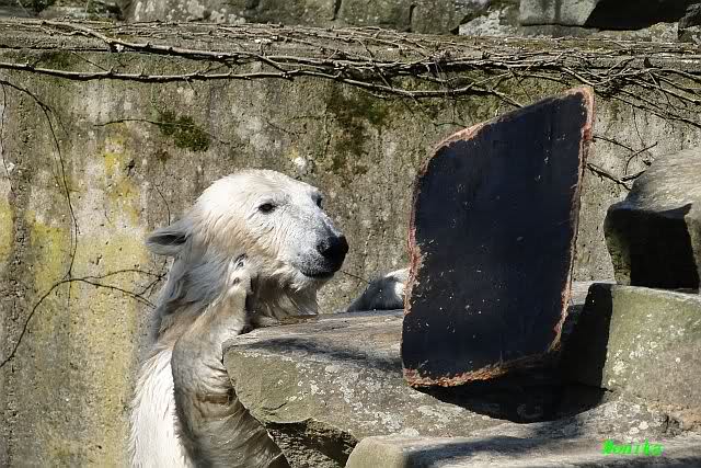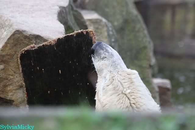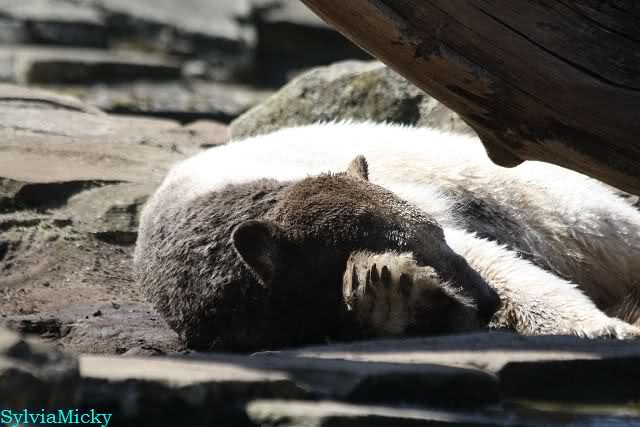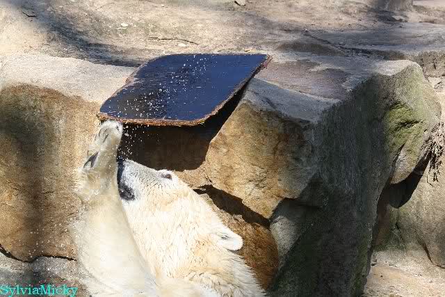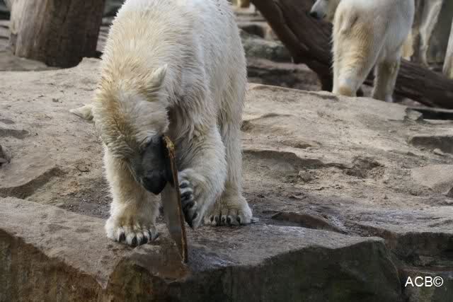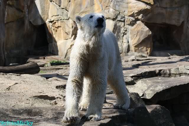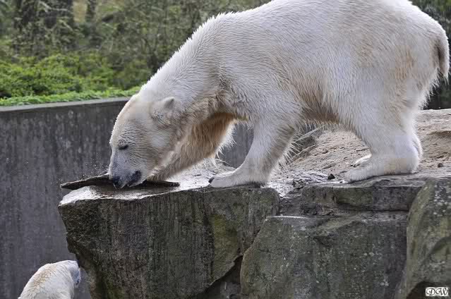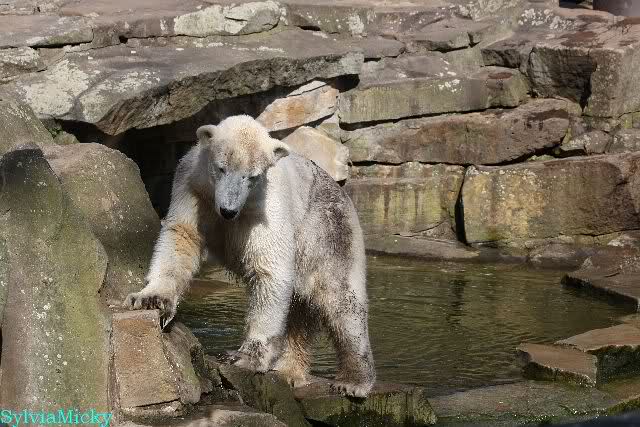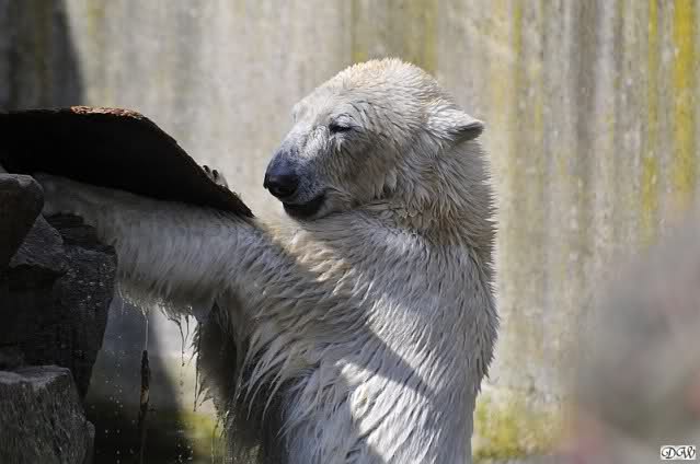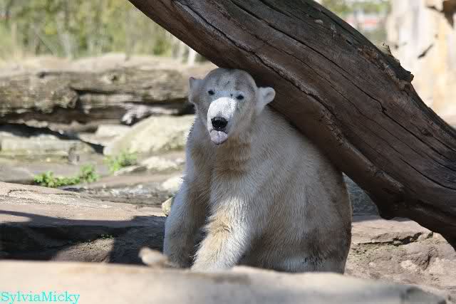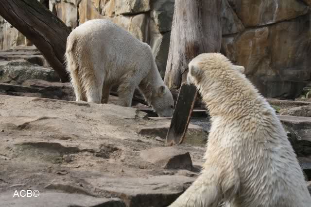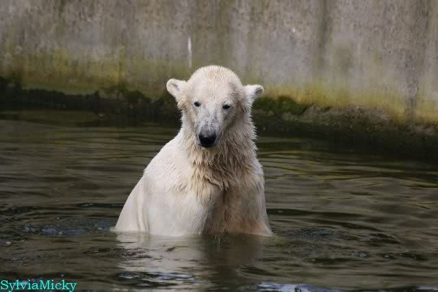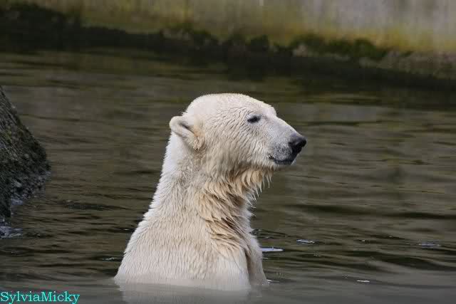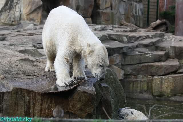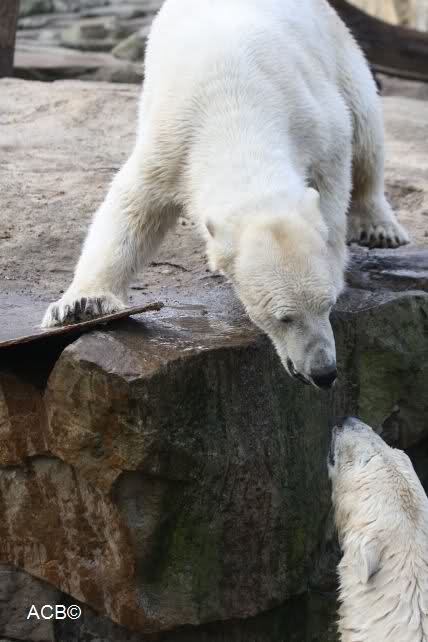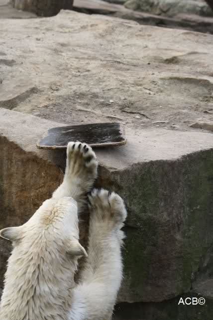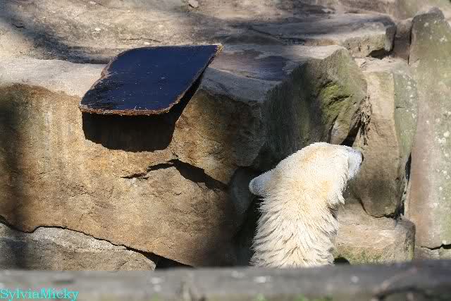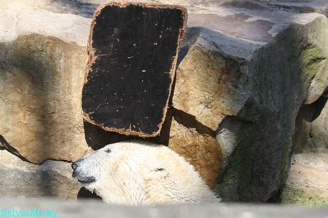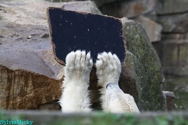 Schade, daß der Zoo die Hinweisschilder zu Knut beim Gehege der großen Eisbären abgenommen hat. Die Besucher rätseln immer, wer von den großen Eisbären Knut ist.