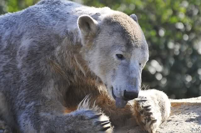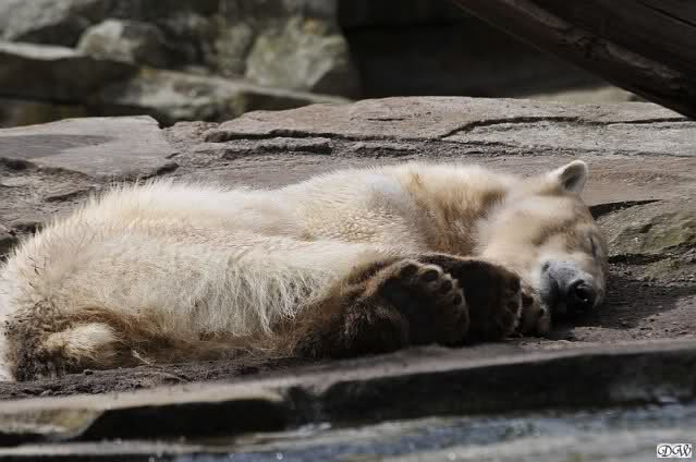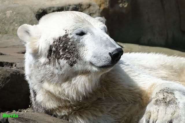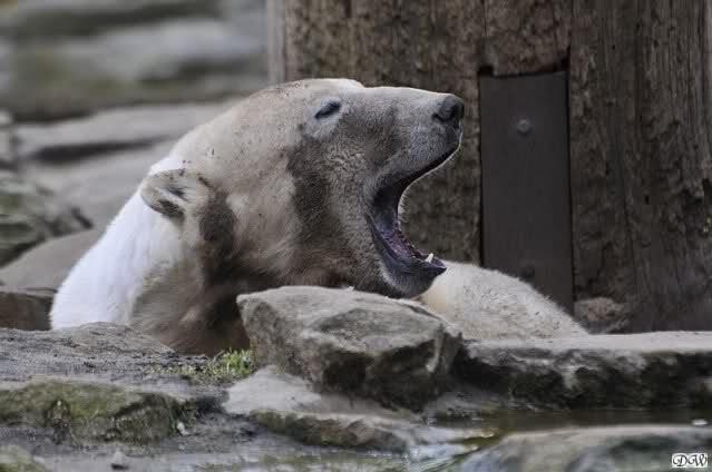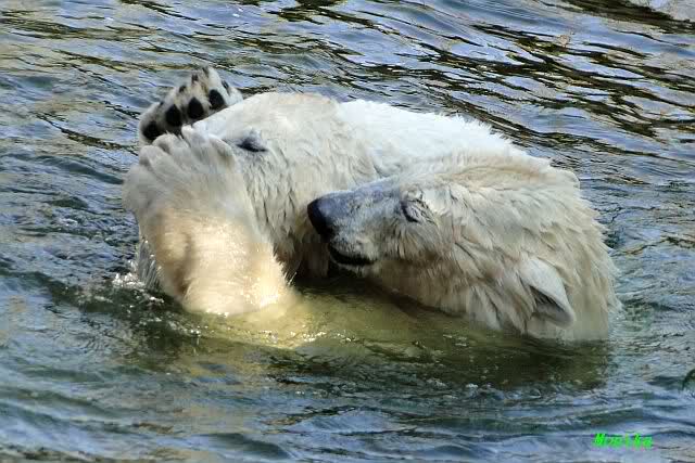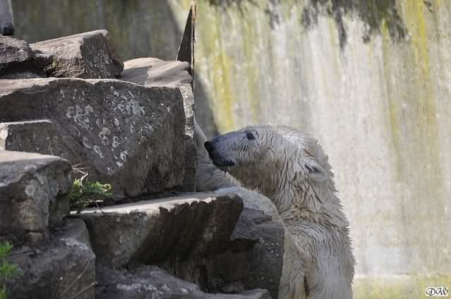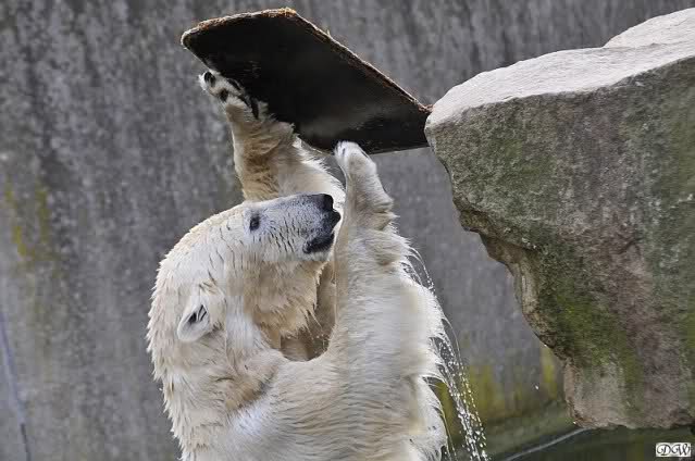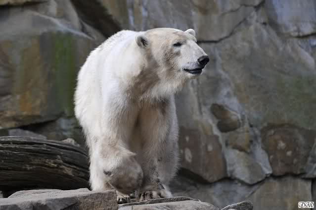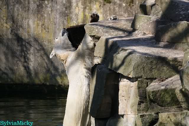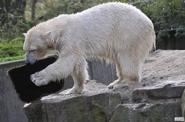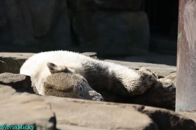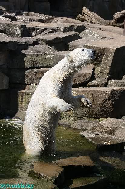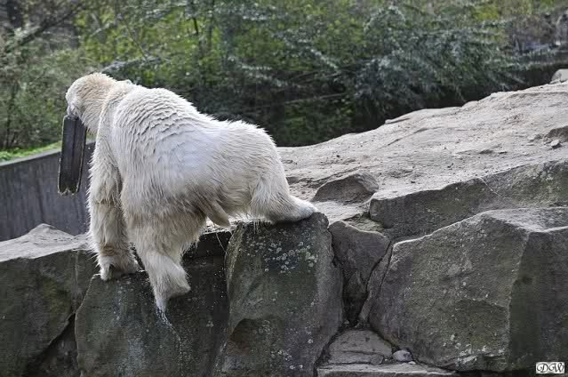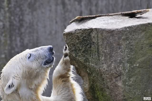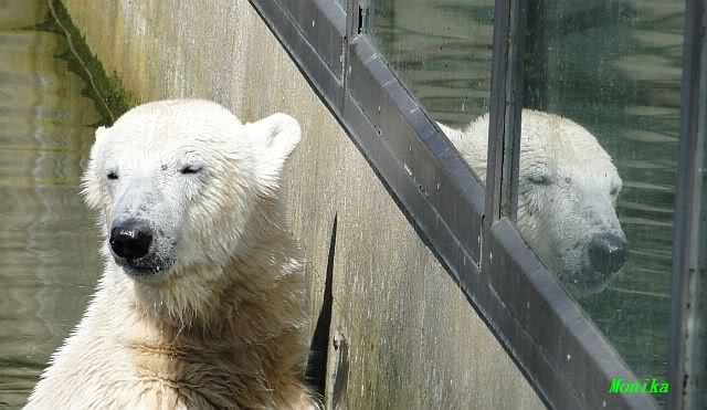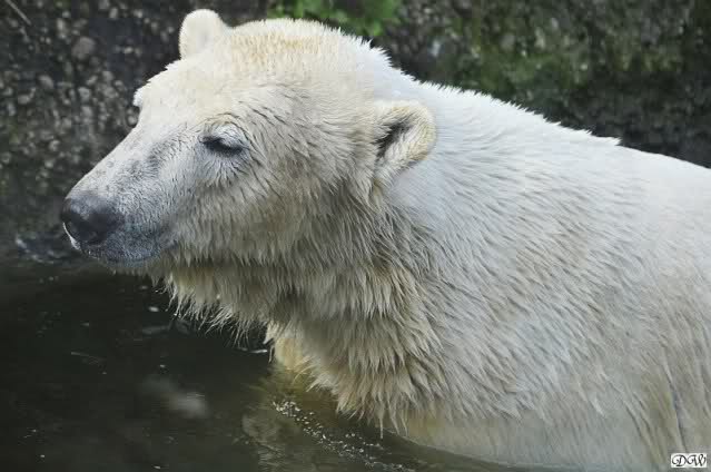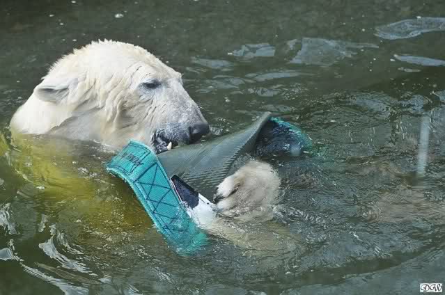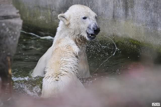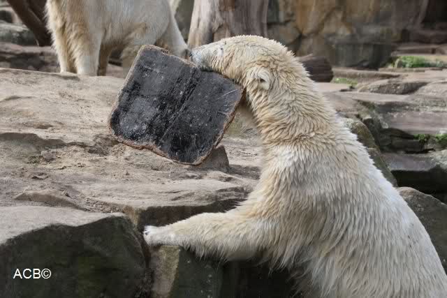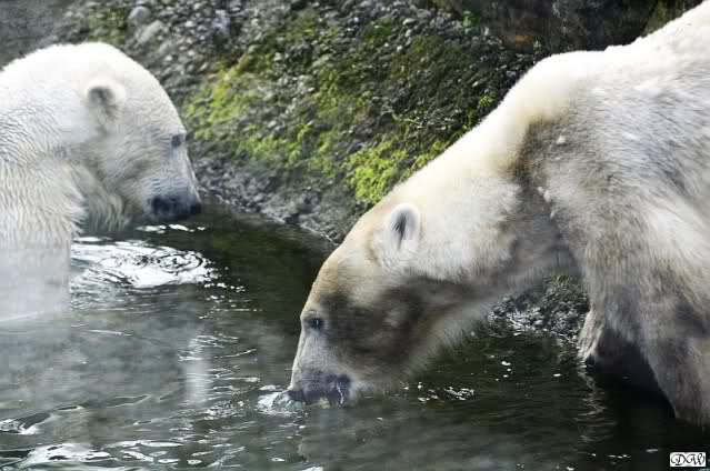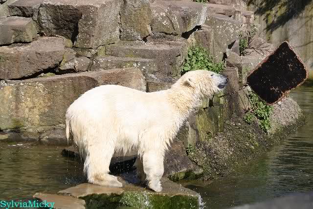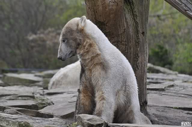 Schade, daß der Zoo die Hinweisschilder zu Knut beim Gehege der großen Eisbären abgenommen hat. Die Besucher rätseln immer, wer von den großen Eisbären Knut ist.