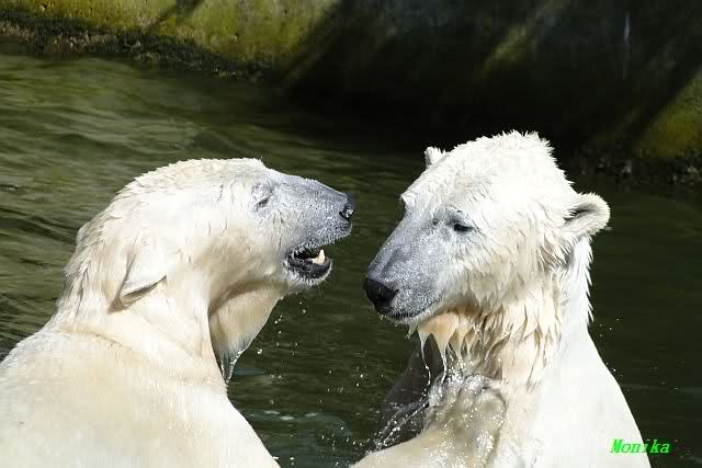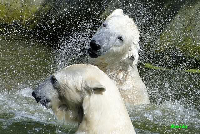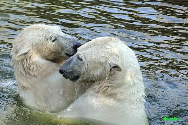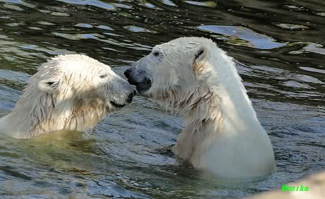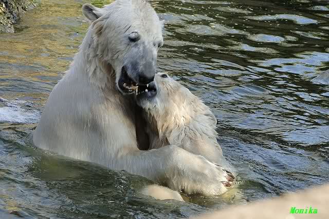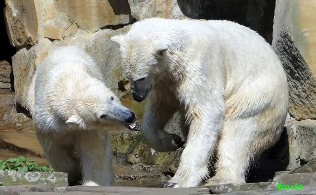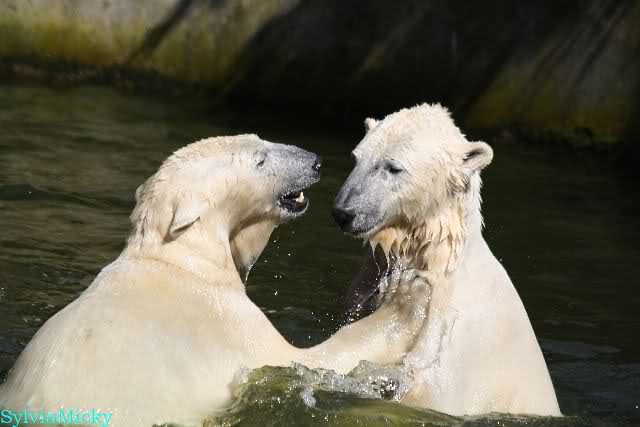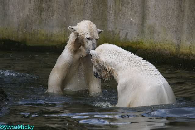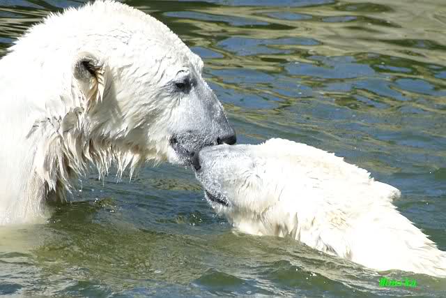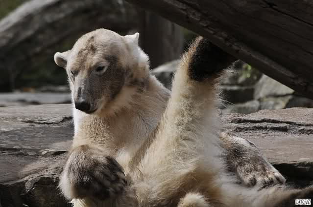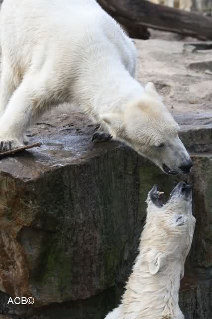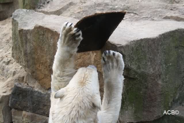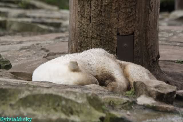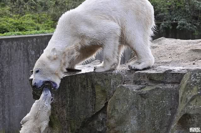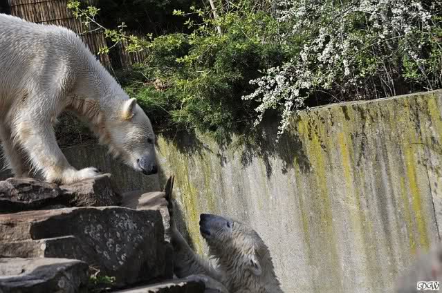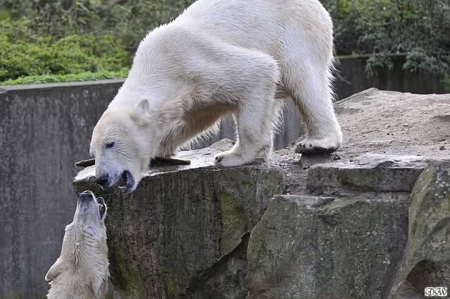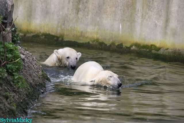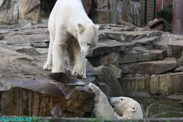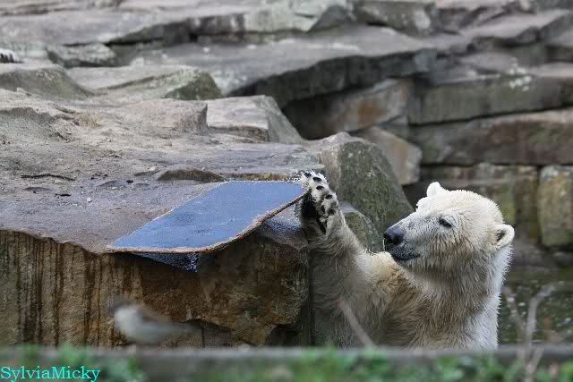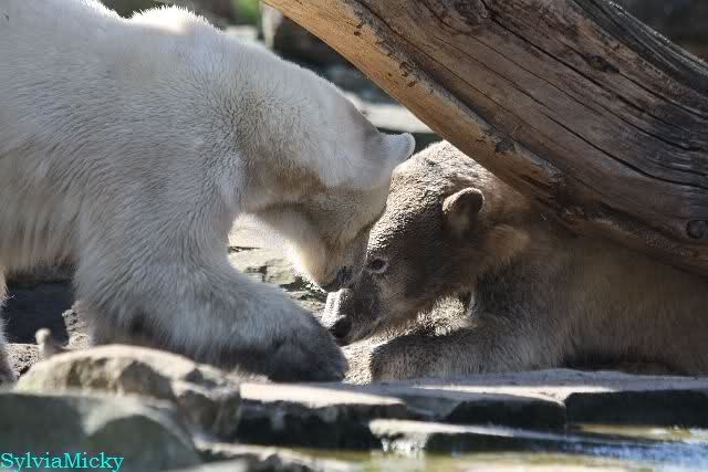 Leider ist auch mein Flug annuliert worden und deshalb kann ich am Dienstag nicht nach Berlin kommen um Knut und Gianna zu besuchen. Richtig Schade! Ich hatte mich so gefreut um Knut un Gianna nach fast 3 Monate wieder zu sehen. Aber wie Violetta auch schon geschrieben hat aufgeschoben ist nicht aufgehoben. Da komme ich doch ein anderes Mahl. Für jetzt sind es euere Foto's und euere Zooberichten die mich am laufenden halten über unsere Zwei Zauberbären.