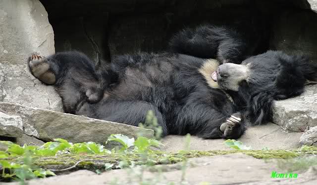 Der Bär hat die Ruhe weg, während Sutra den ganzen Tag von einem Höhleneingang zum anderen läuft